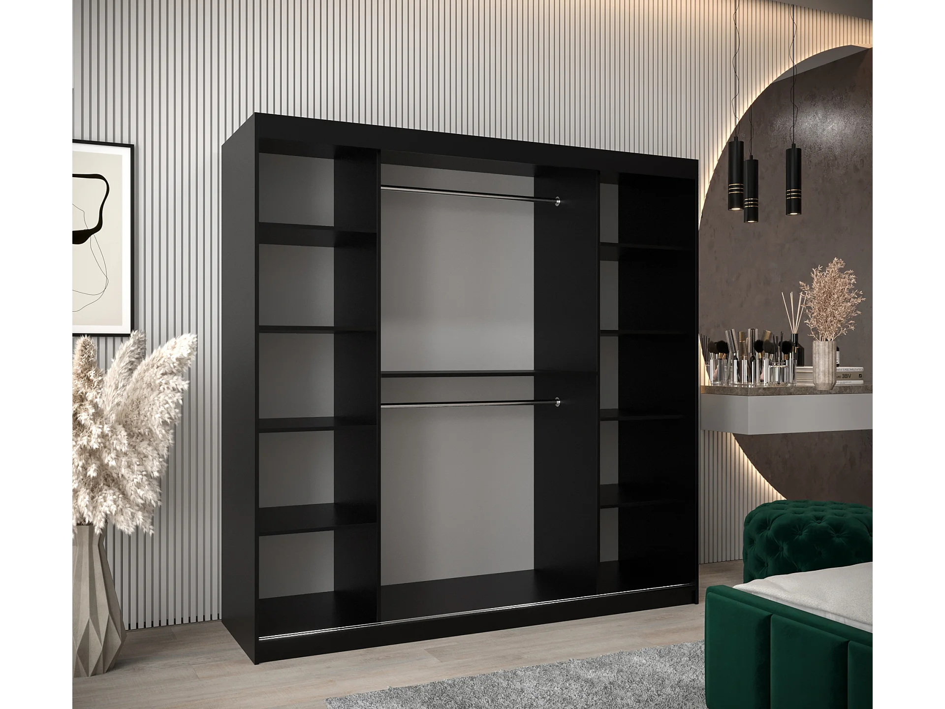 Armoire Tokyo 2 À Portes Coulissantes 200/200/62 2 portes (Noir/Artisan)