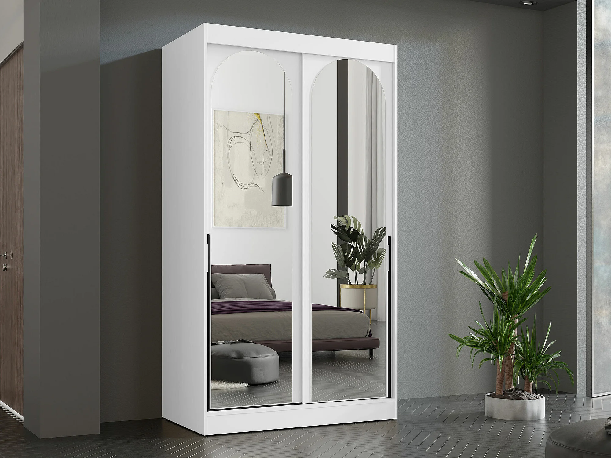 Armoire Toledo 130, Noir|Blanc, 216x120x65cm, Portes d'armoire: Coulissantes