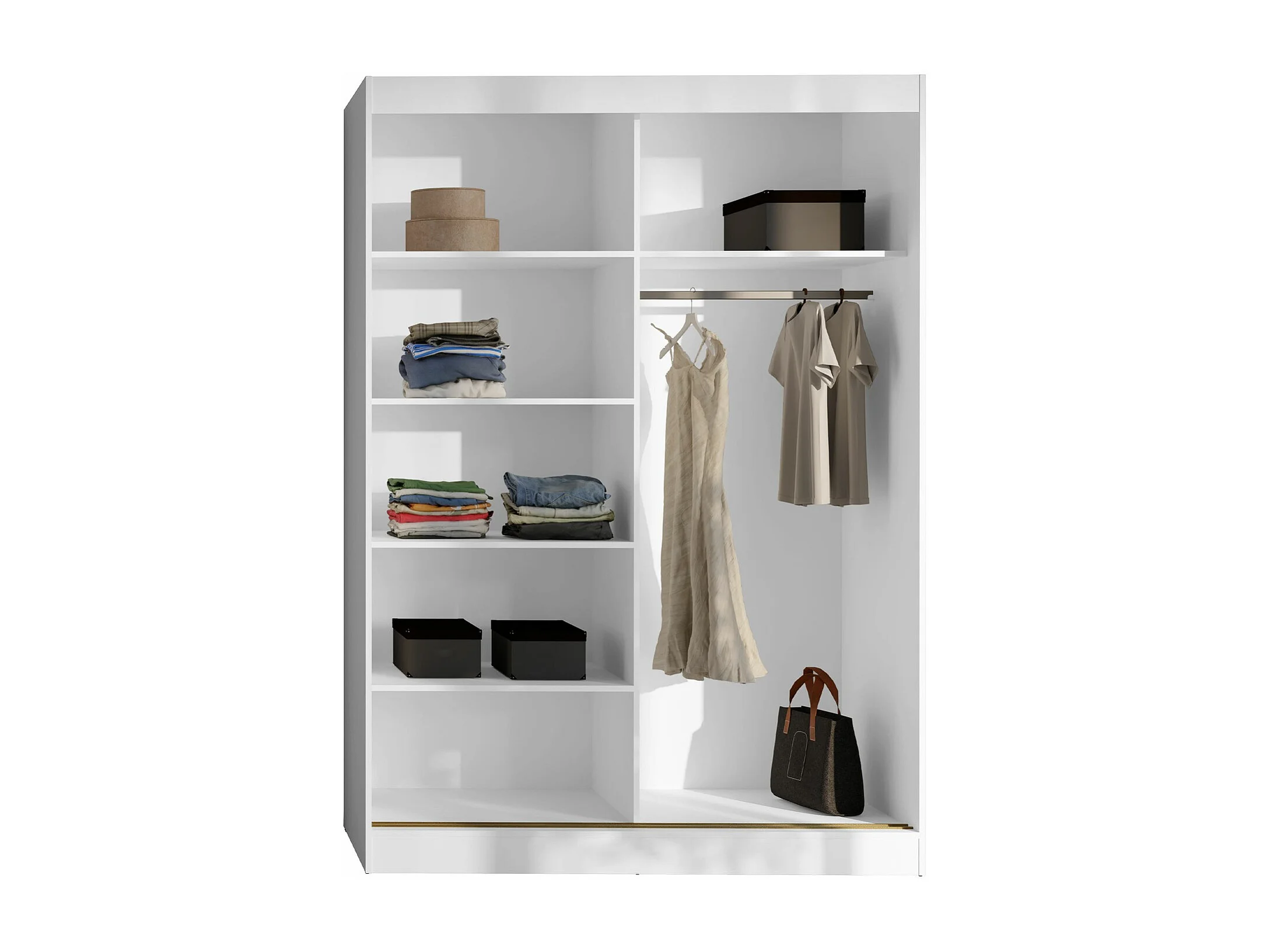 Armoire Toledo 131, Noir|Blanc, 216x150x65cm, Portes d'armoire: Coulissantes