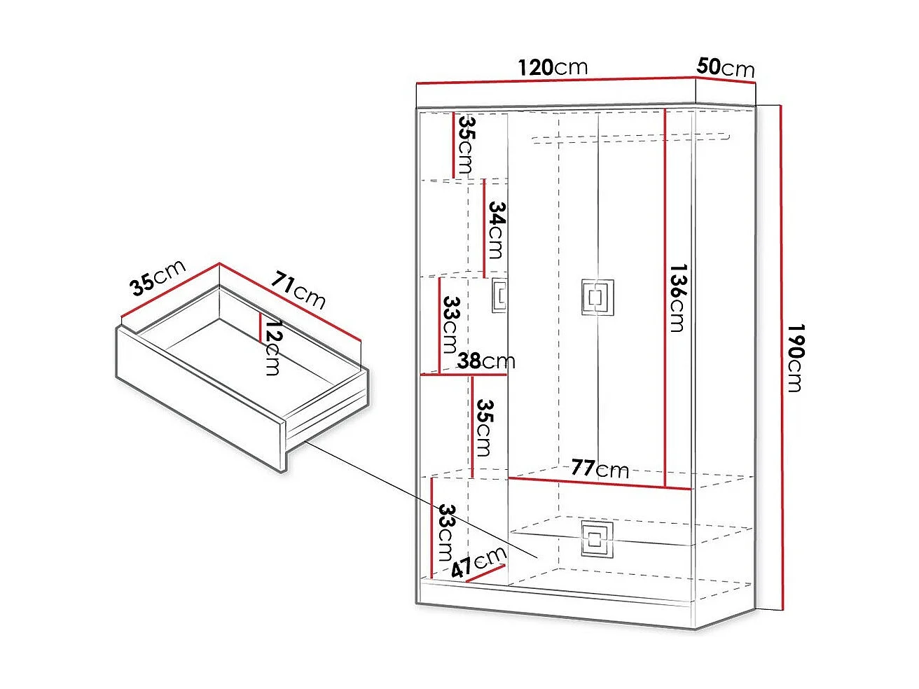 Armoire Tolfere 103, Blanc|Turquoise|Chêne clair, 190x120x50cm, Nombre d'étagères: 4
