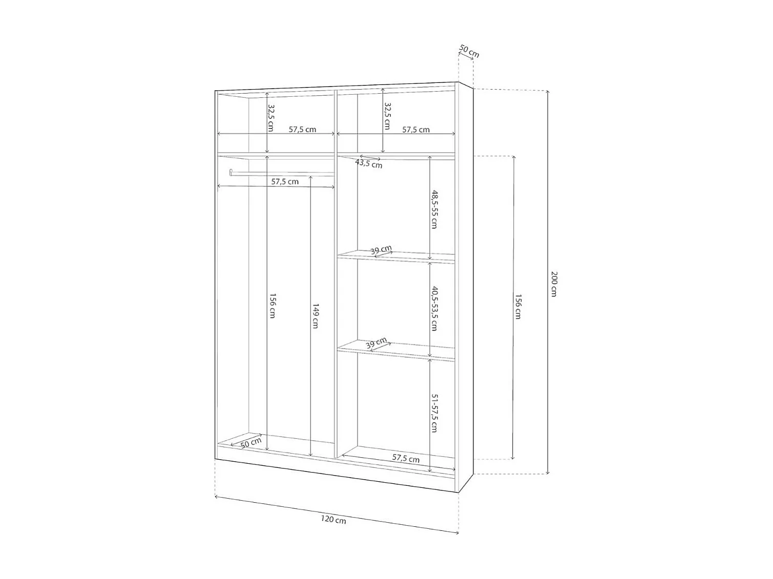 Armoire TOP Blanc Artik et Blanc Vehlo 2 Portes Coulissantes 200x120x50 cm