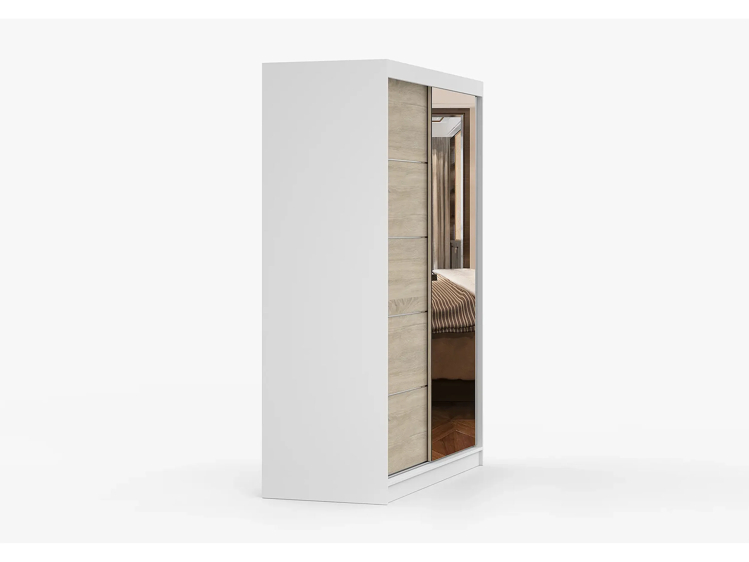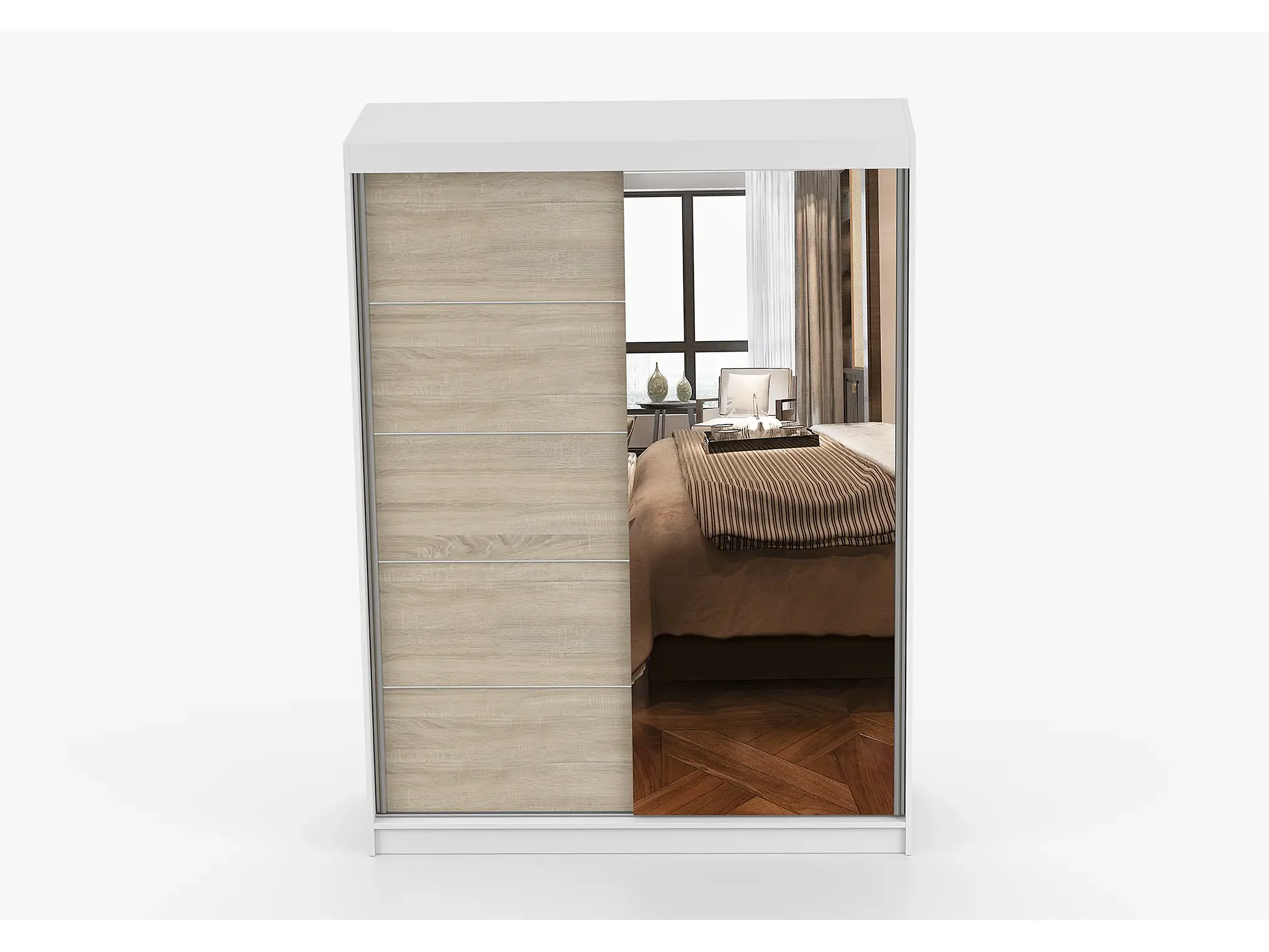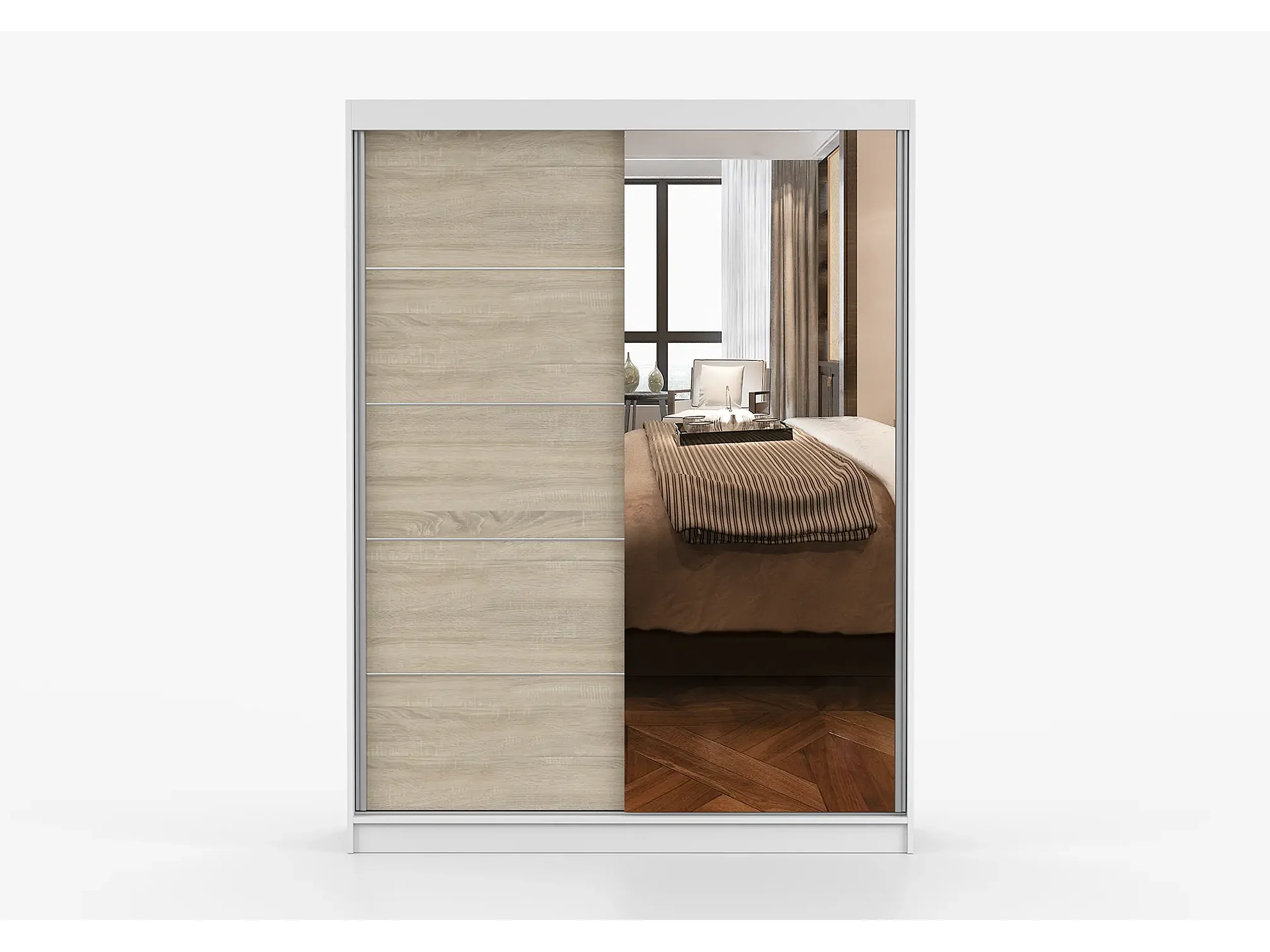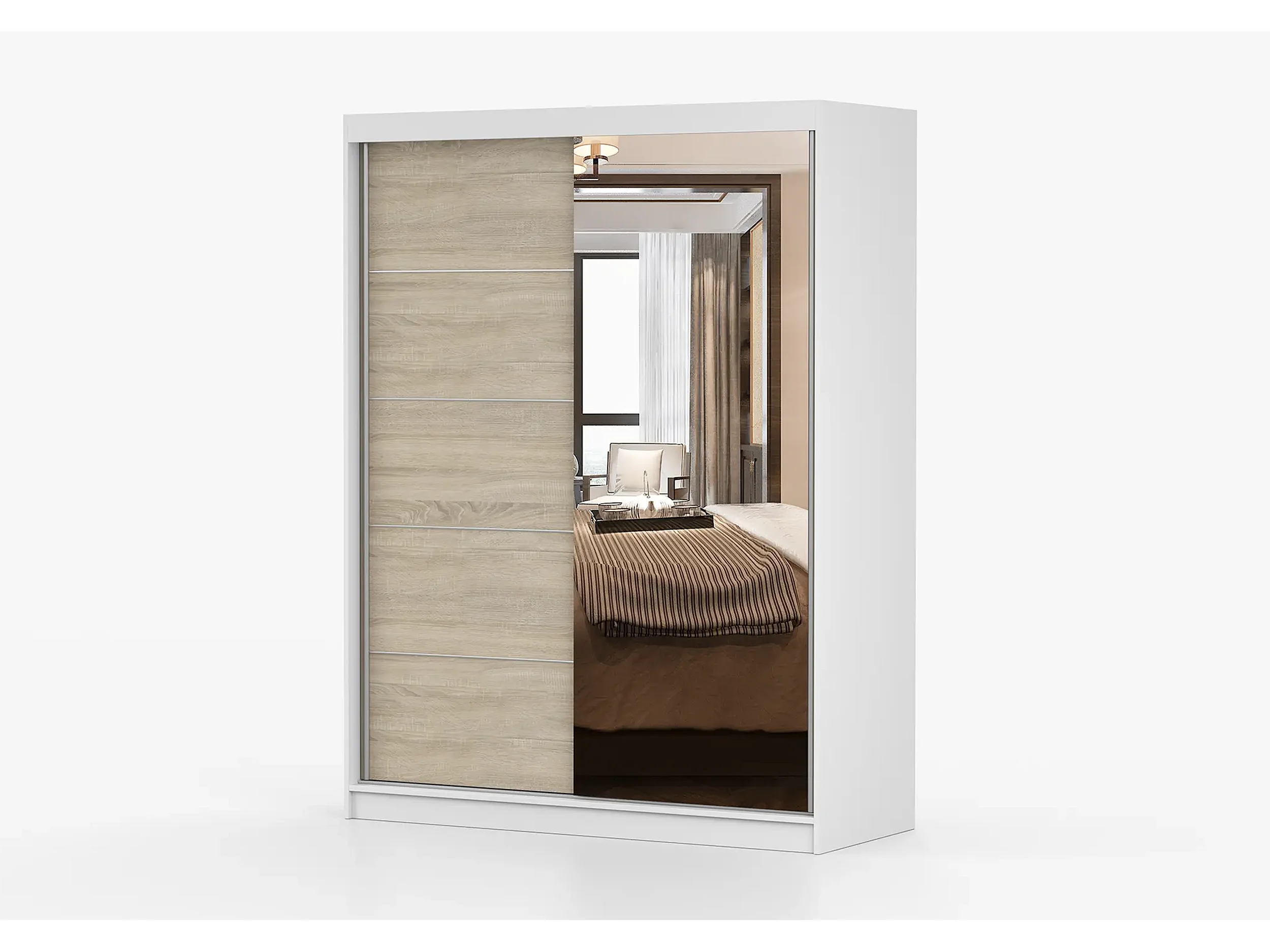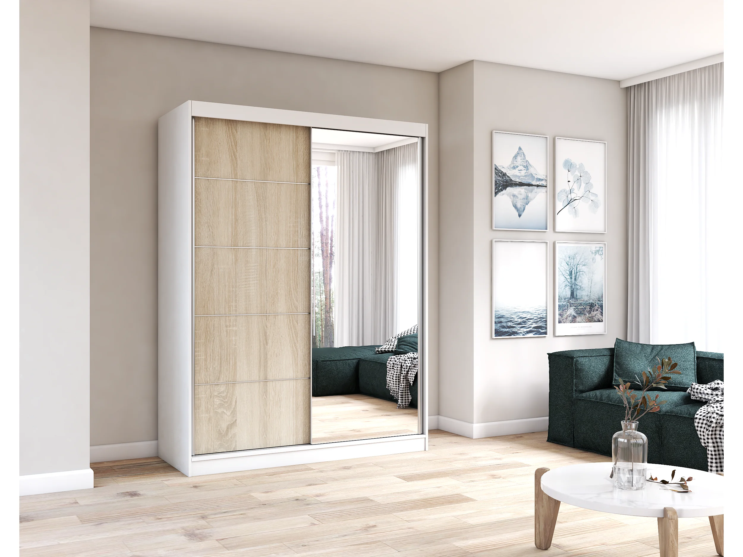 Armoire Vaiana 150 cm avec miroir - Blanc - Chêne
