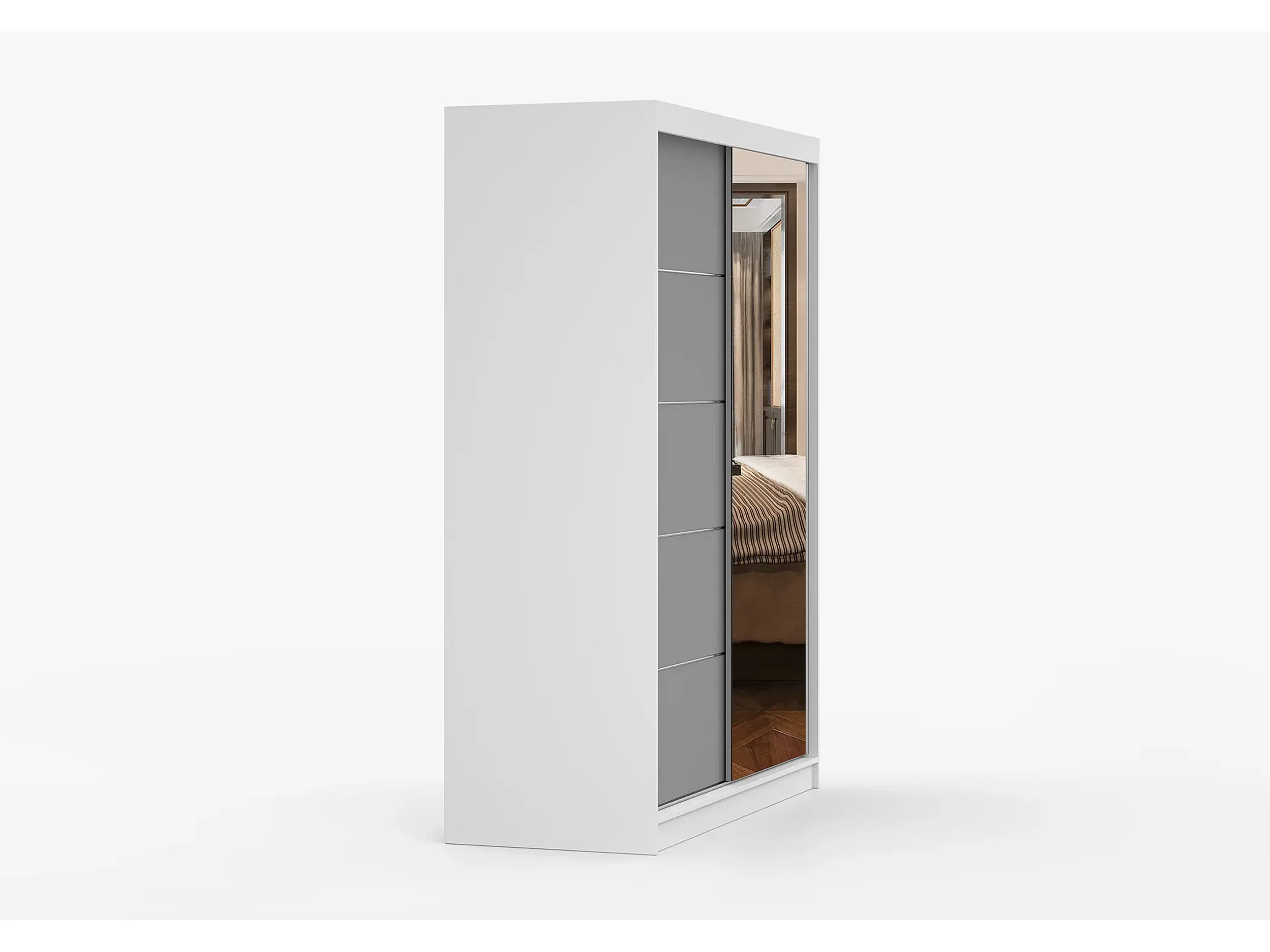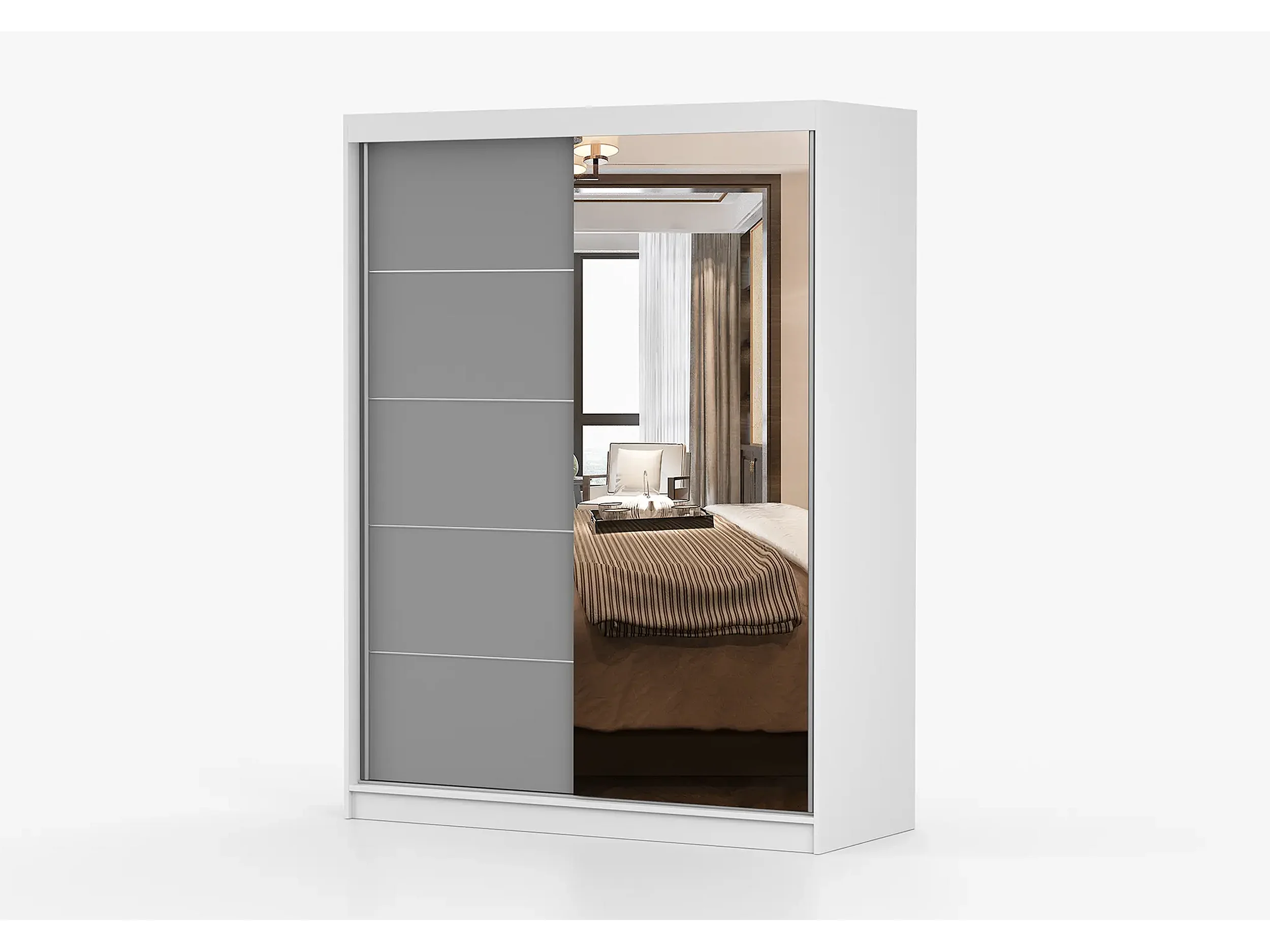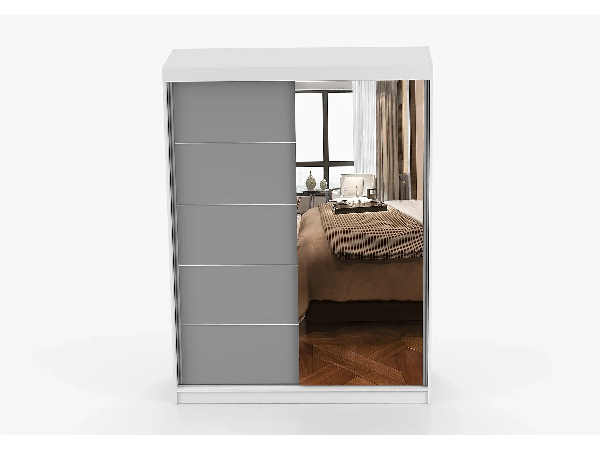 Armoire Vaiana 150 cm avec miroir - Blanc - Gris