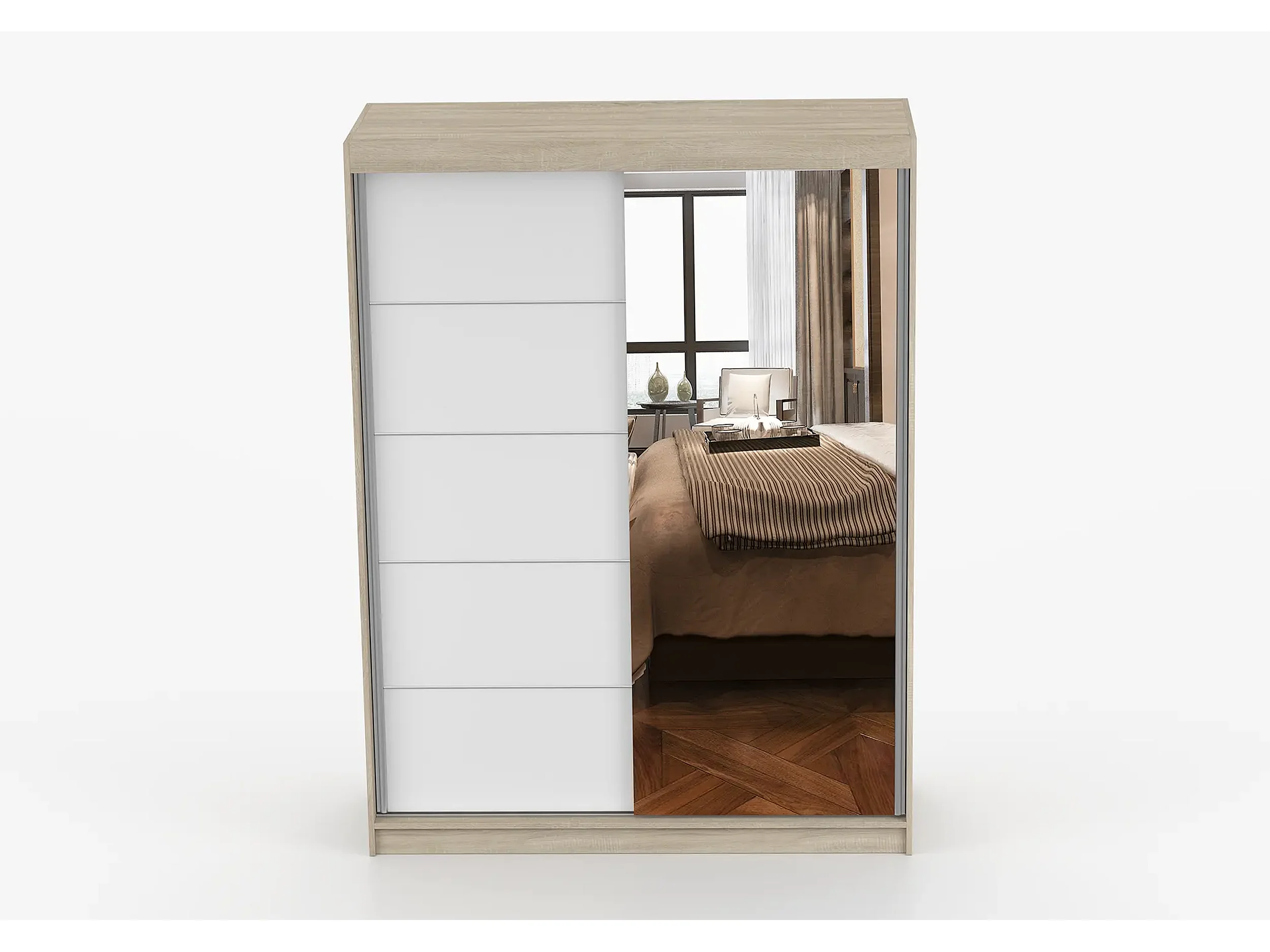 Armoire Vaiana 150 cm avec miroir - Chêne - Blanc
