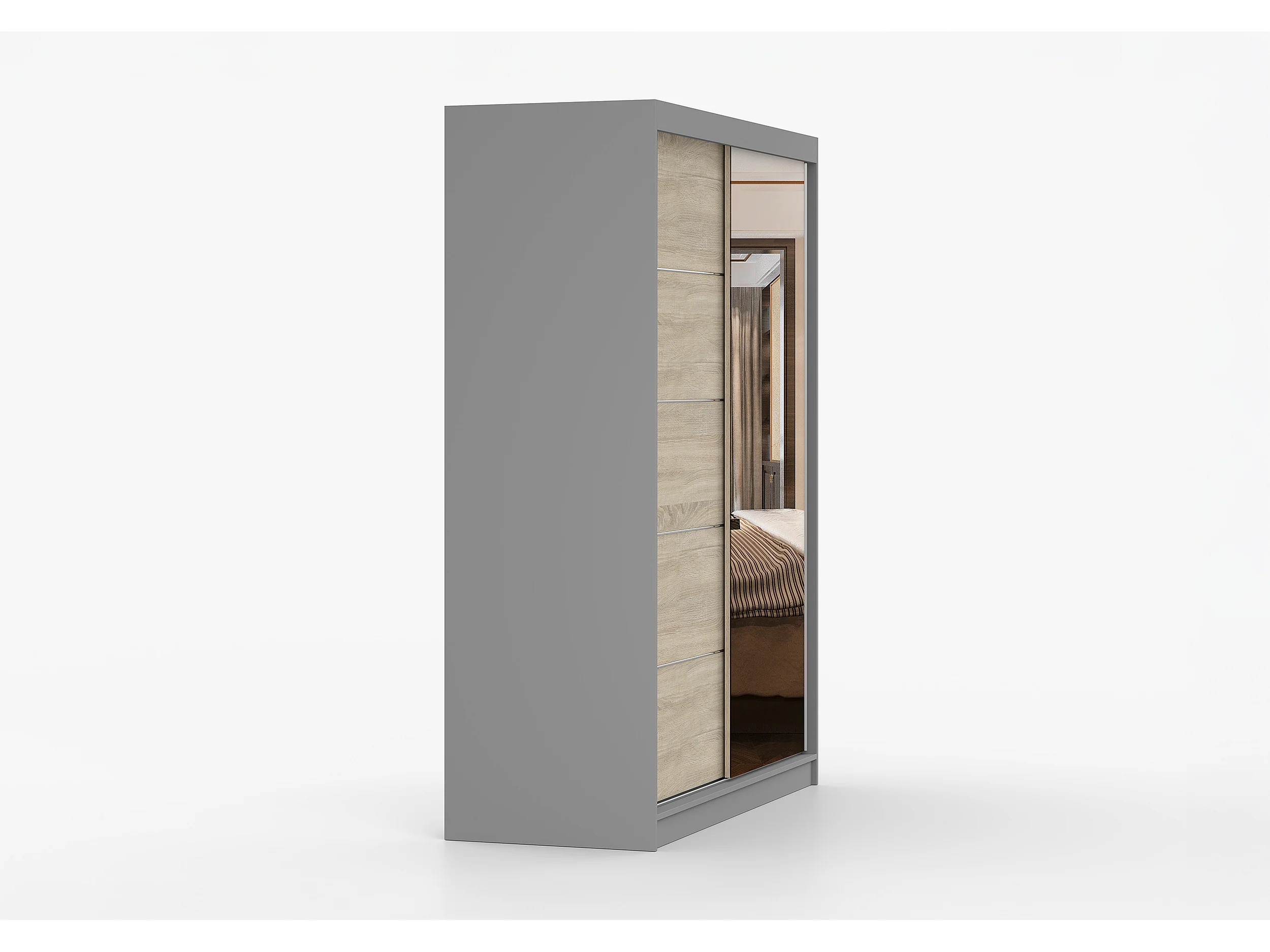 Armoire Vaiana 150 cm avec miroir - Gris - Chêne