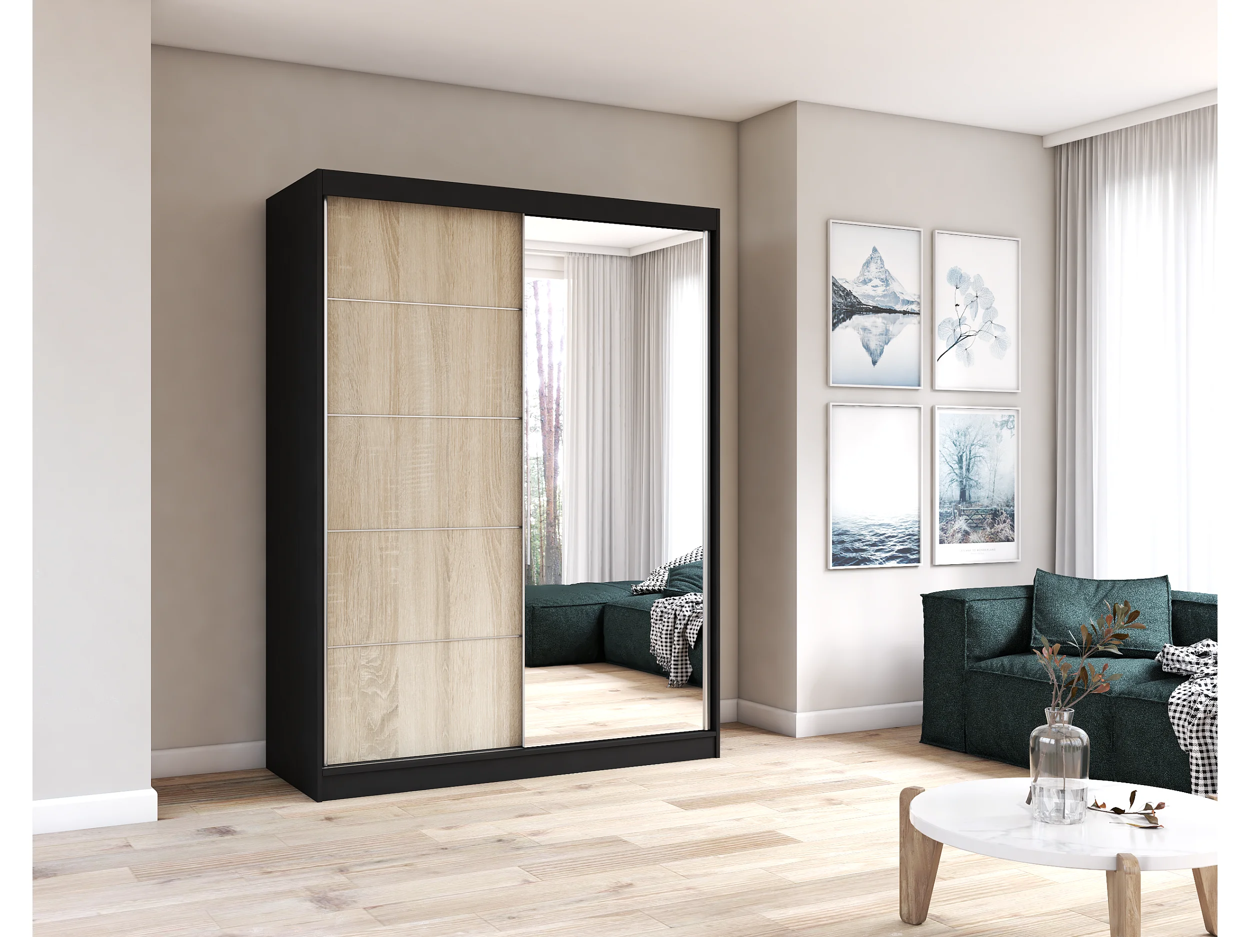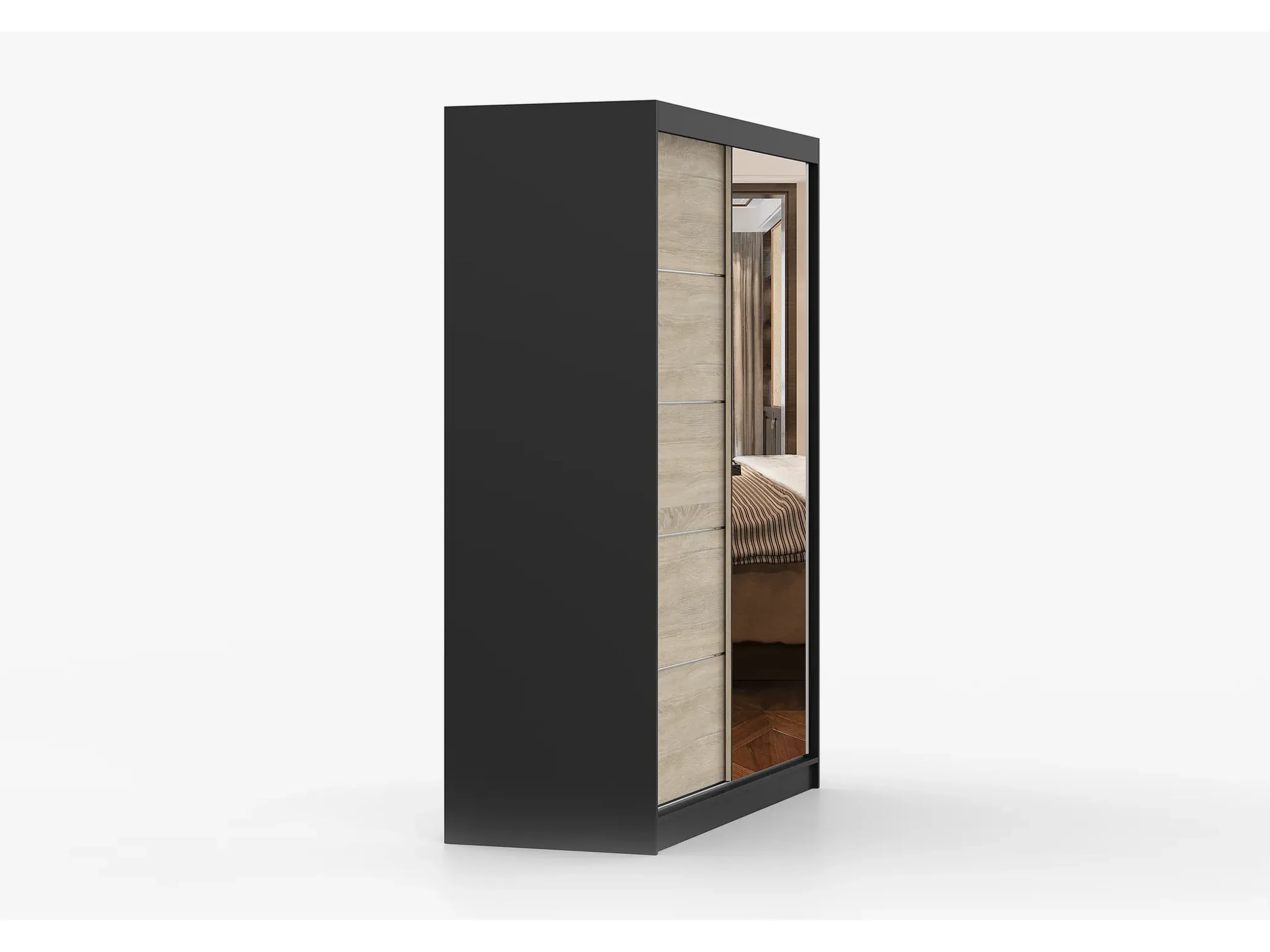 Armoire Vaiana 150 cm avec miroir - Noir - Chêne