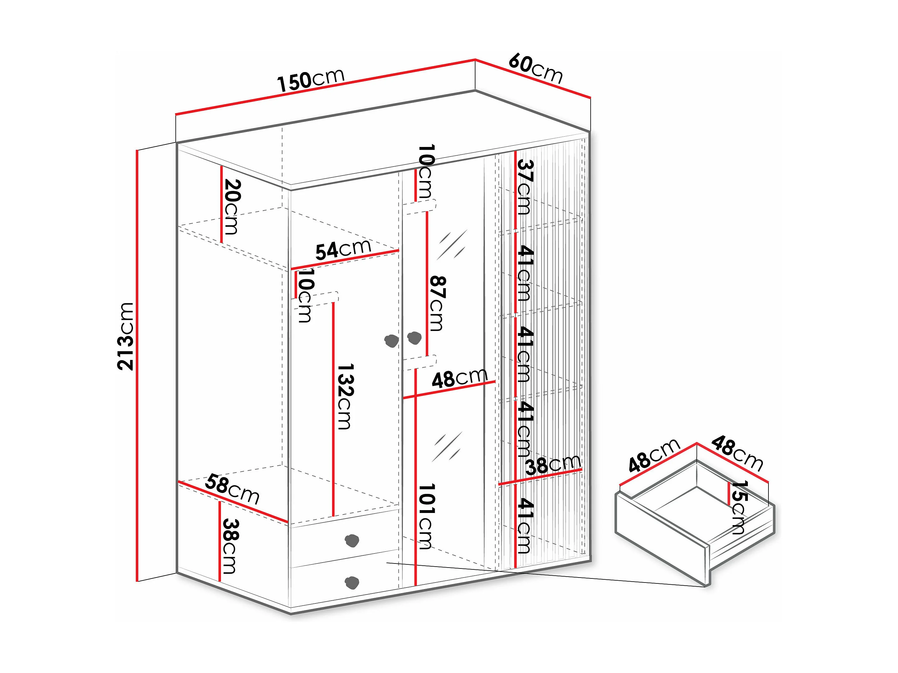 Armoire Venmava 115, Chêne Artisan|Noir, 213x150x60cm