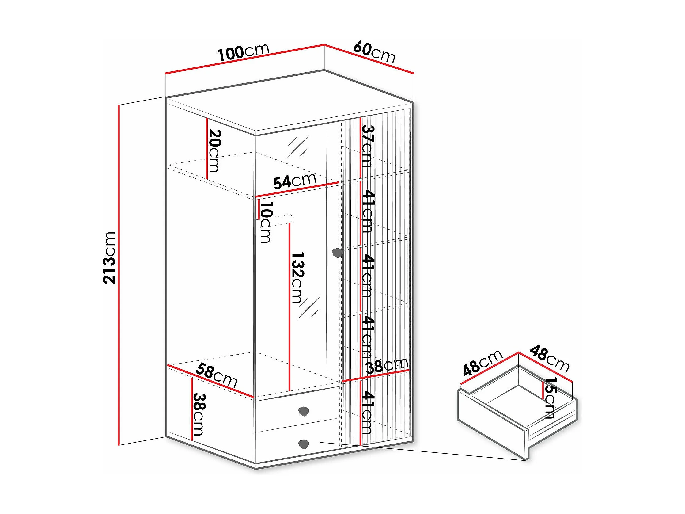 Armoire Venmava 116, Chêne Artisan|Noir, 213x100x60cm