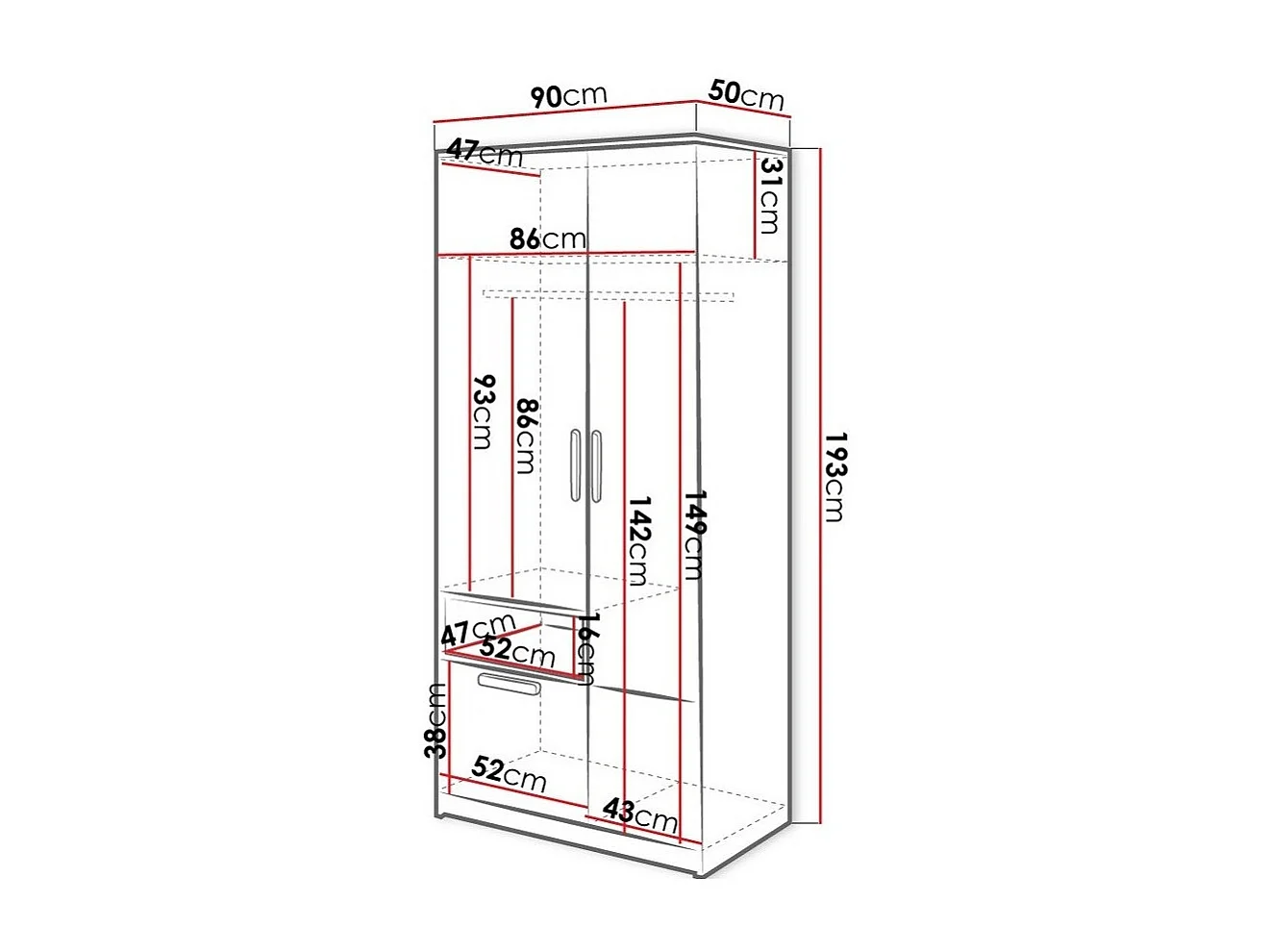 Armoire Veravie 103, Blanc|Gris clair|Graphite, 193x90x50cm