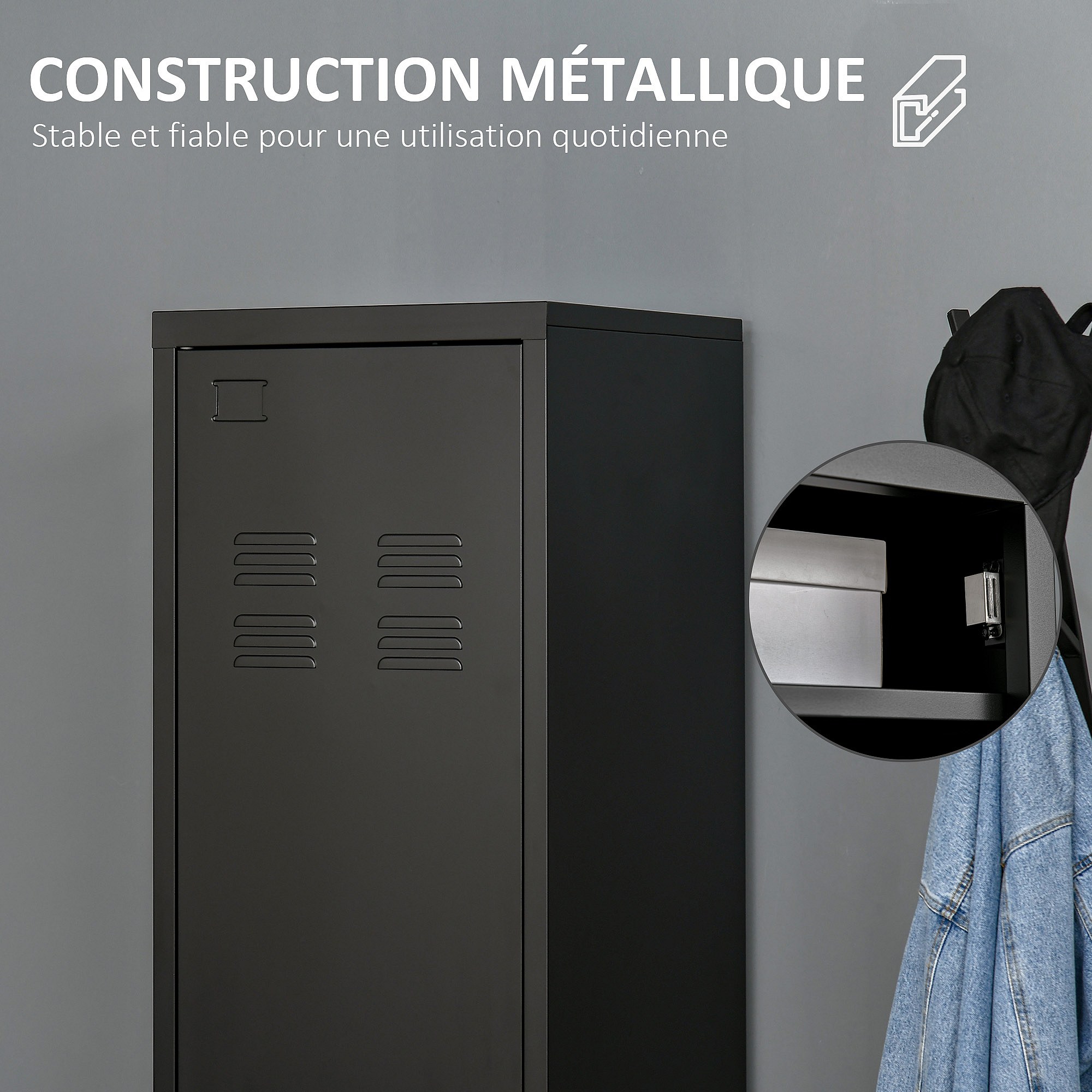 Armoire vestiaire métal design industriel - barre penderie, 3 étagères - dim. 43L x 50l x 180H cm - métal noir