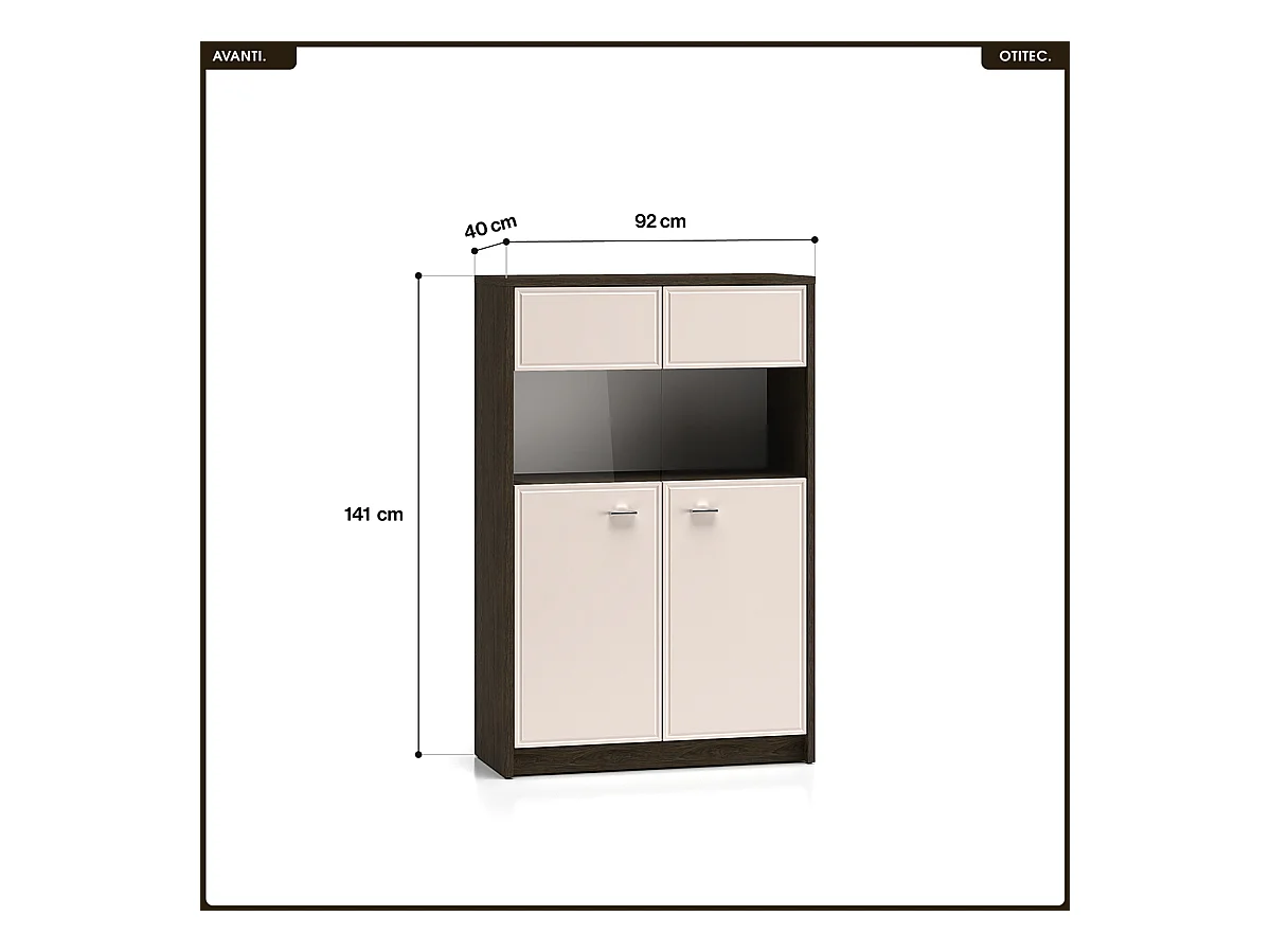 Armoire vitrine - L.92 x H.141 x P.40 cm - AVANTI