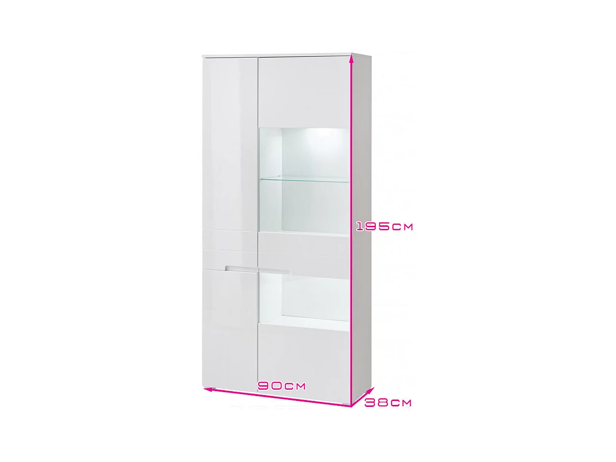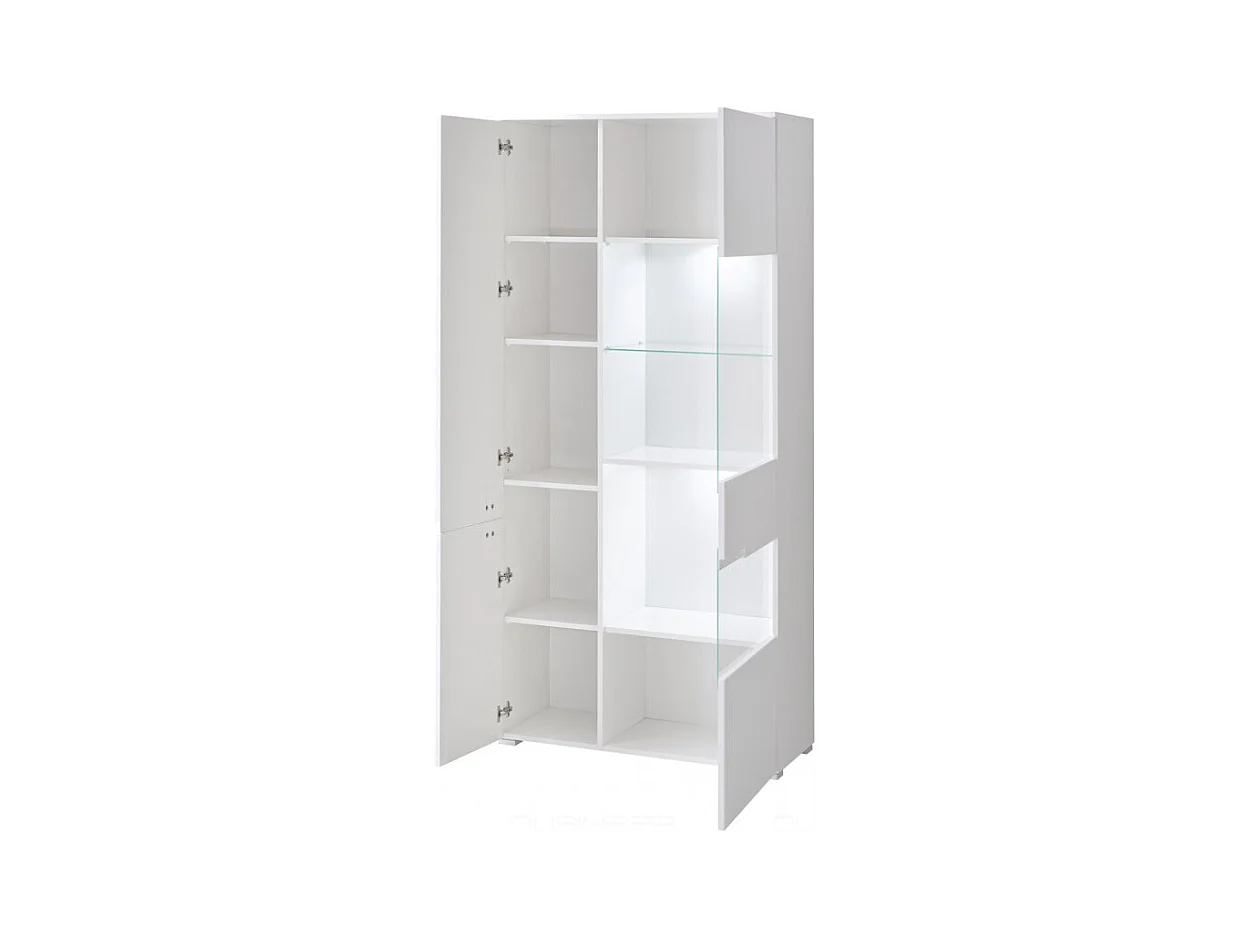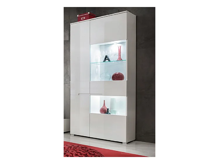 Armoire Vitrine LED bibliothèque 90 cm commode SENCIA Blanc Laqué