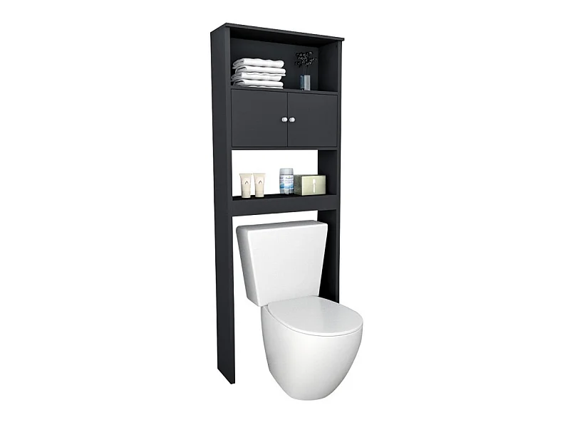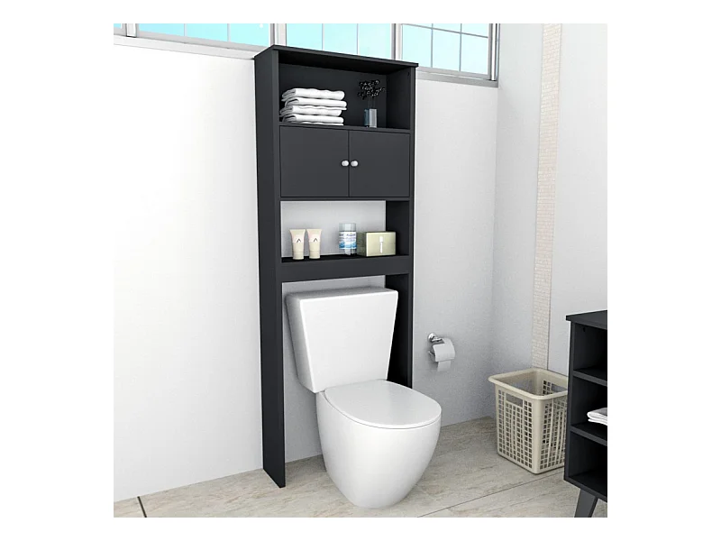 Armoire WC 2 Portes Noire 3 Niches L 65 H 175 P 22 cm