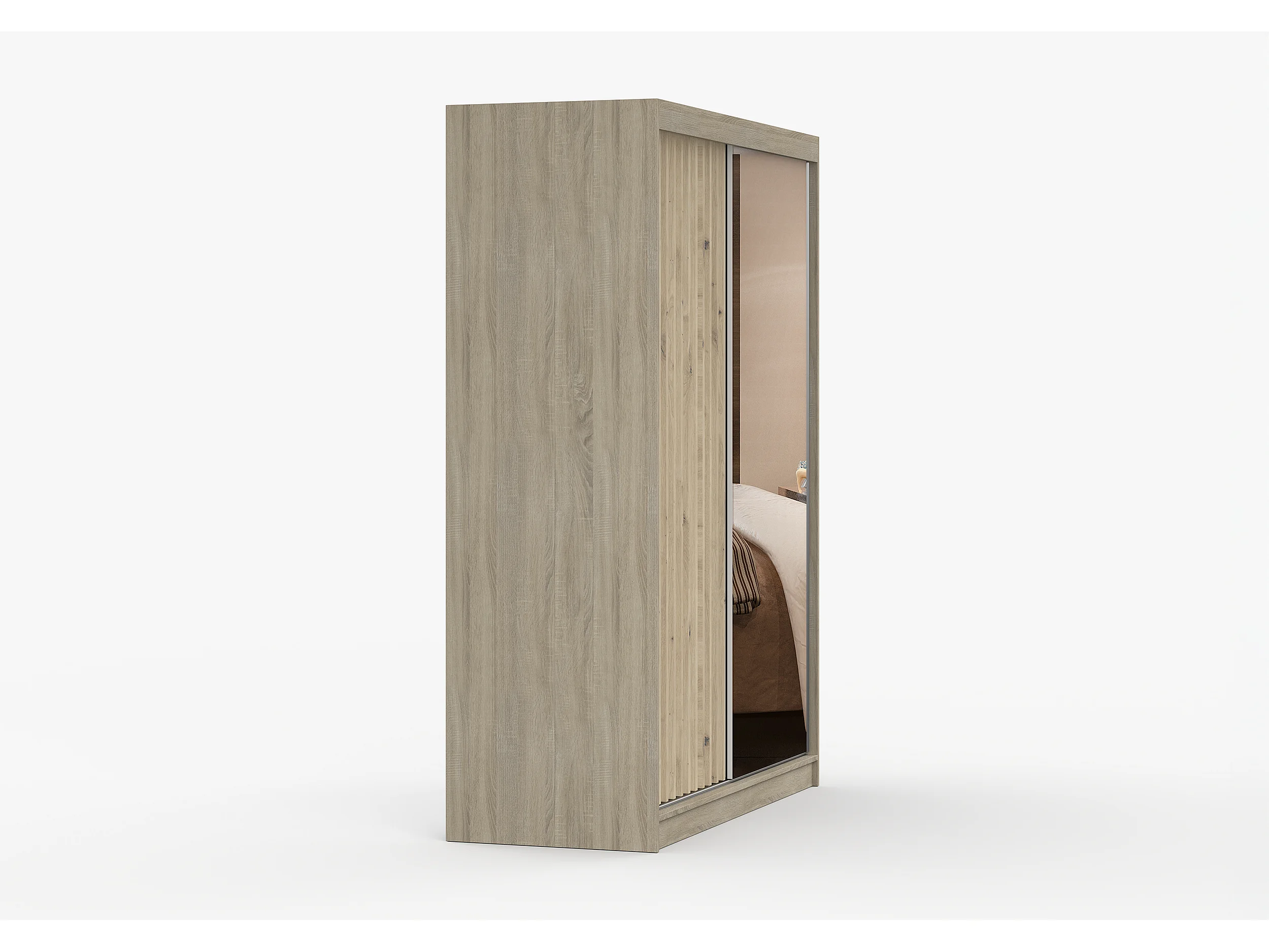 Armoire Zinaé 150 cm avec miroir - Chêne - Blanc