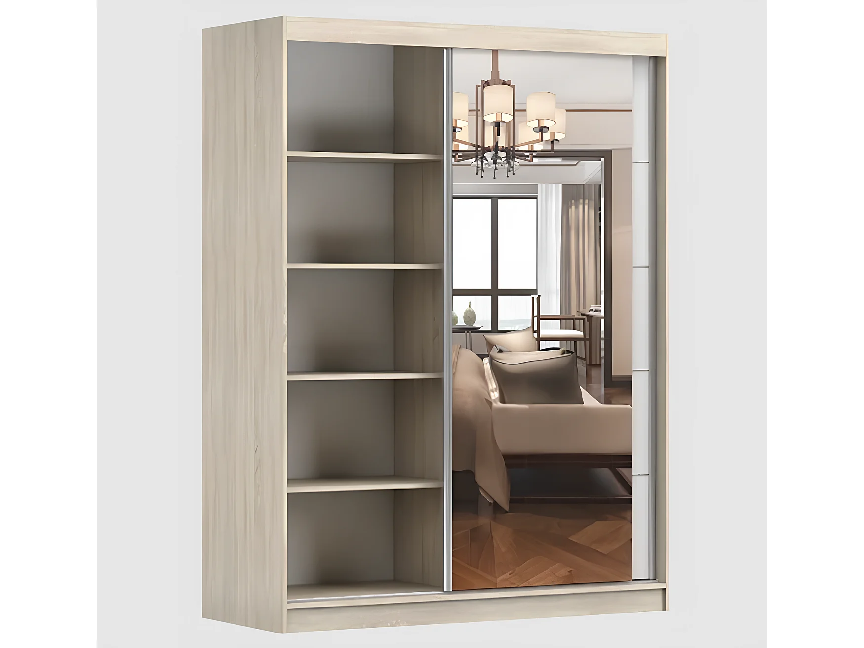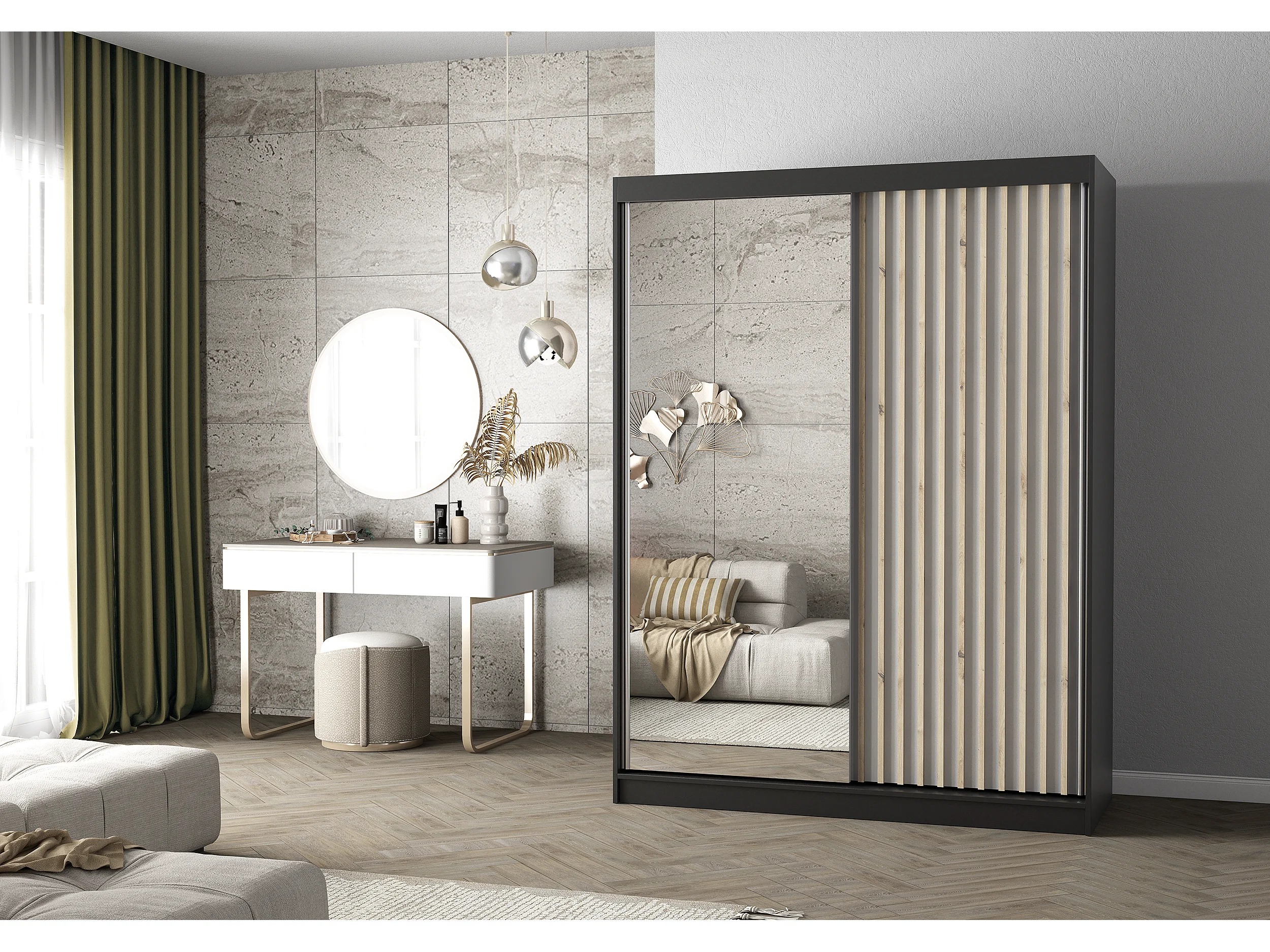 Armoire Zinaé 150 cm avec miroir - Noir - Blanc
