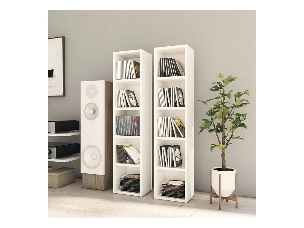Armoires à CD 2 pcs Blanc brillant 21x16x93,5 cm FR63102
