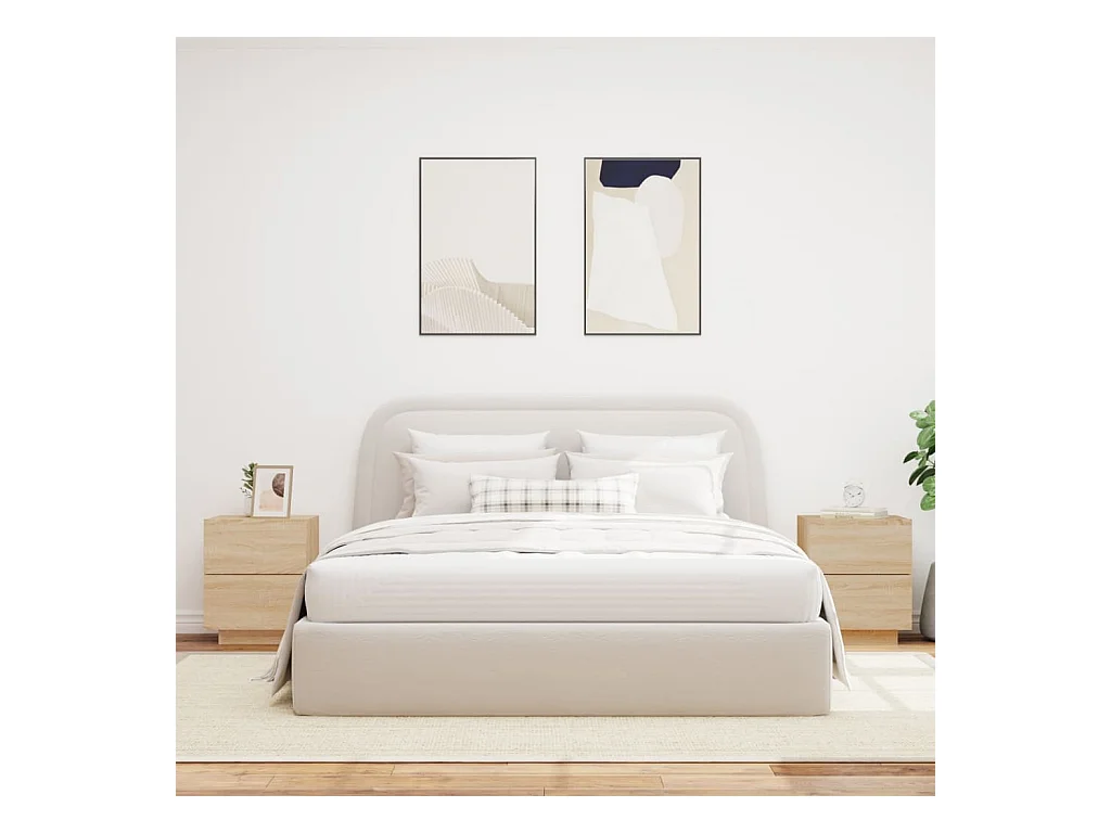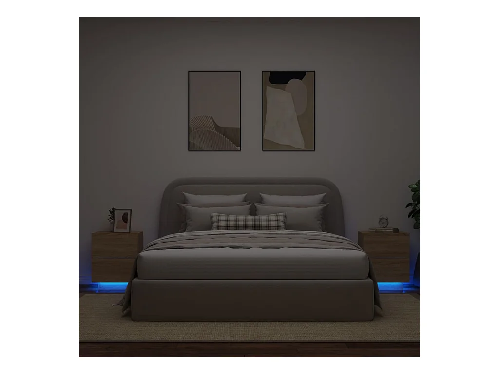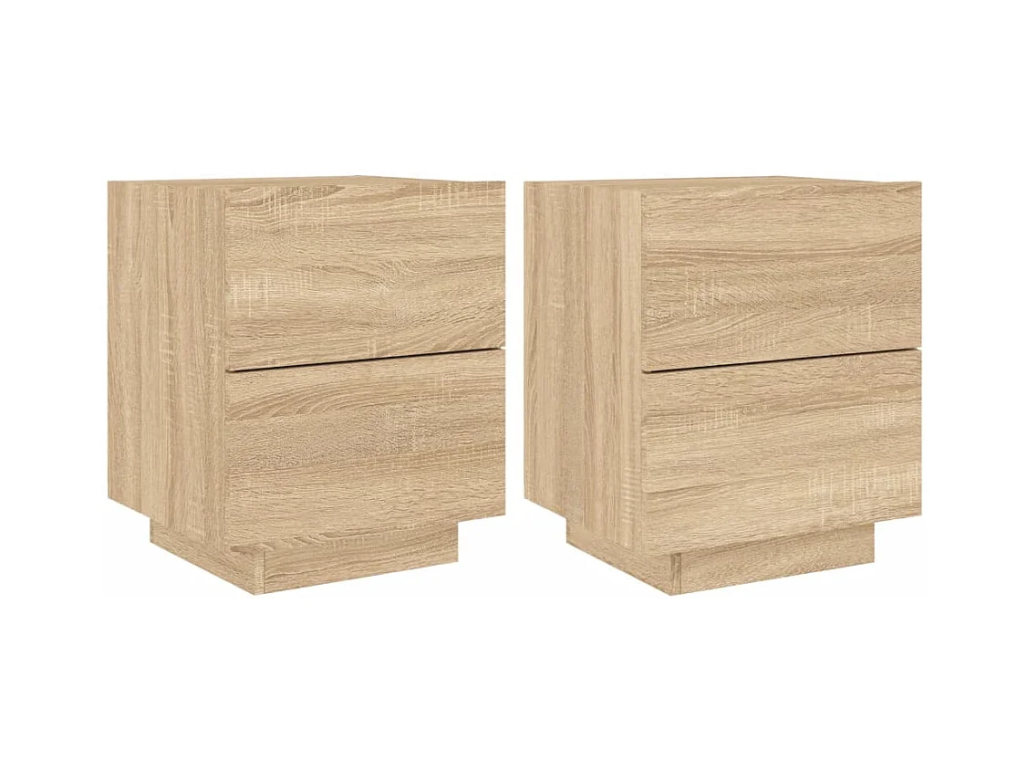 Armoires de chevet et lumières LED 2 pcs chêne sonoma