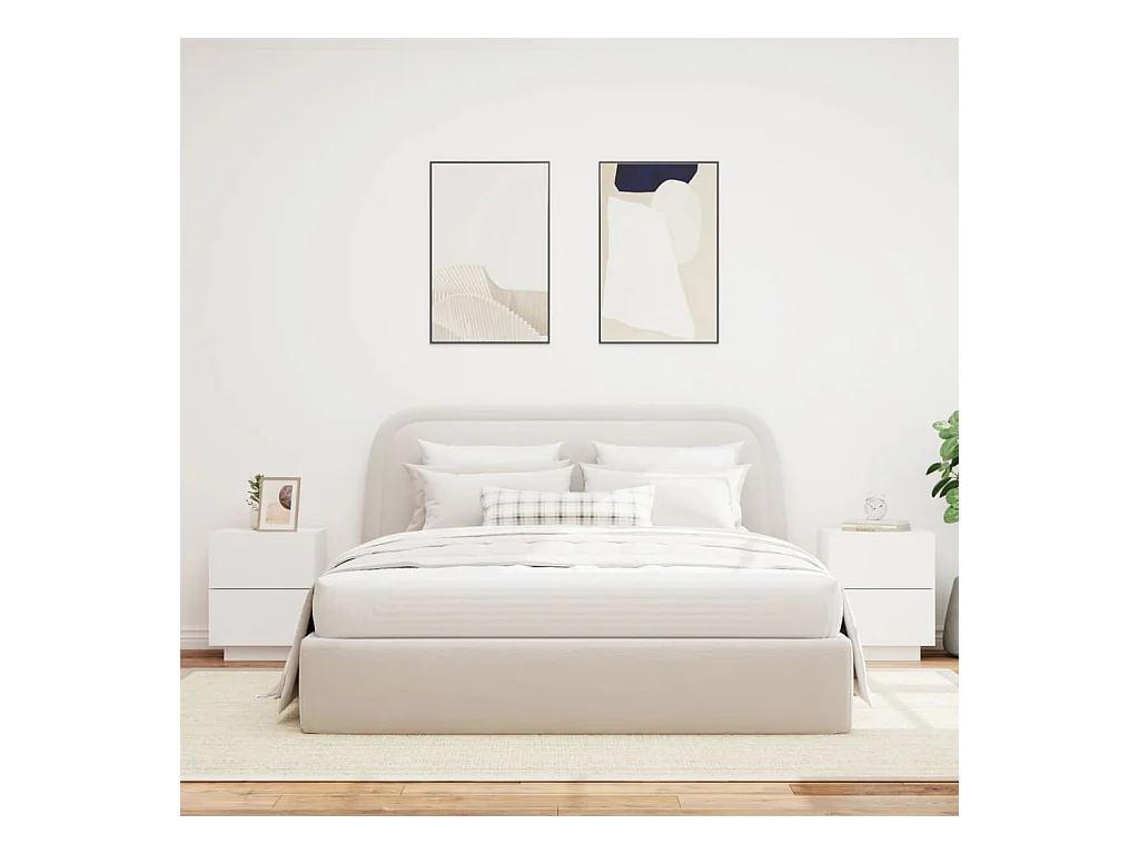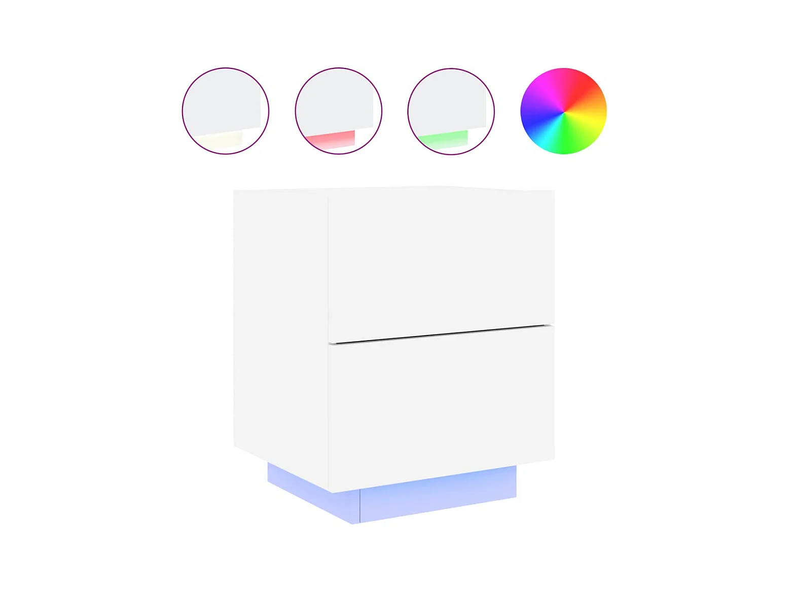 Armoires de chevet et lumières LED 2pcs blanc bois d'ingénierie