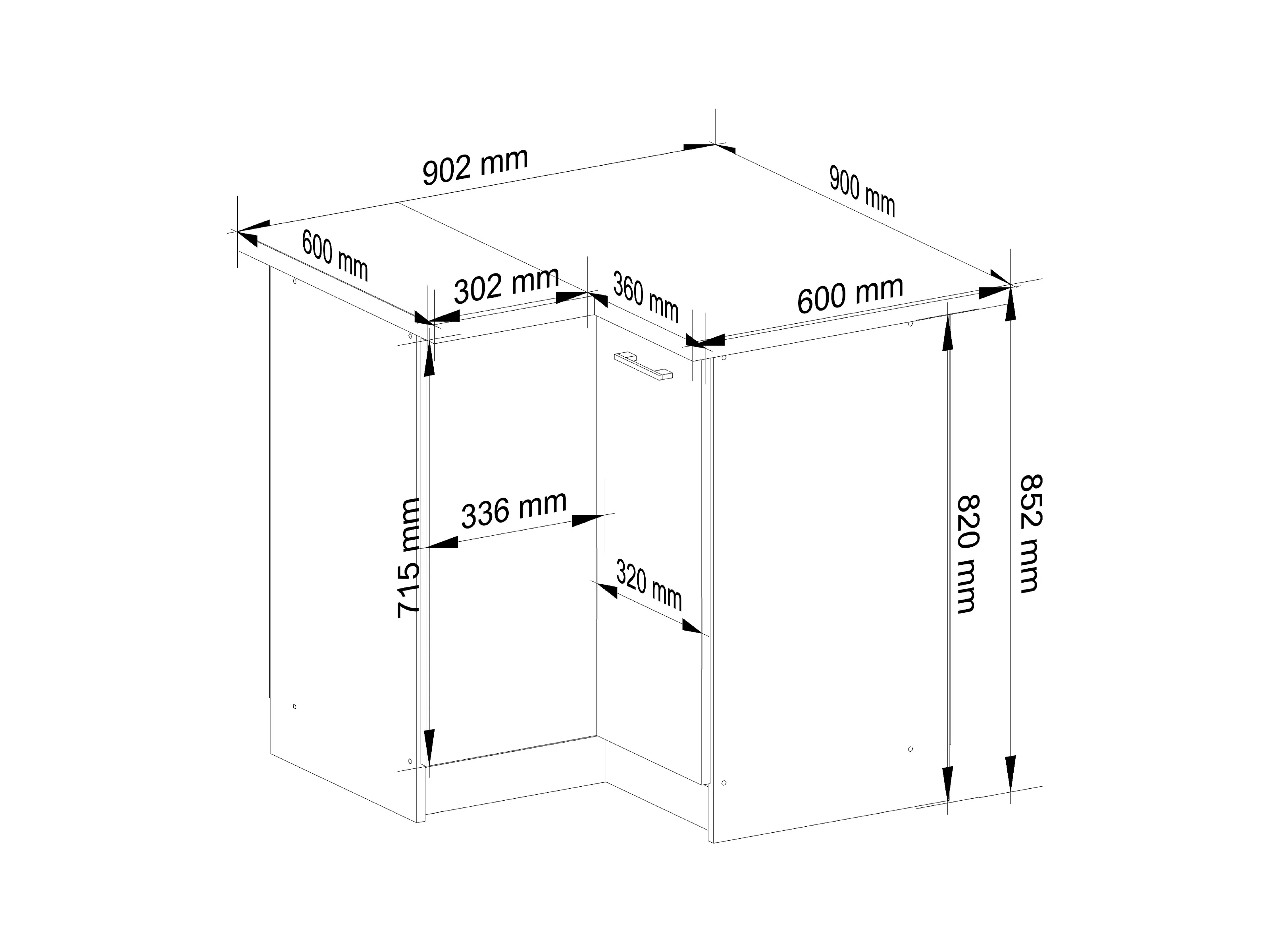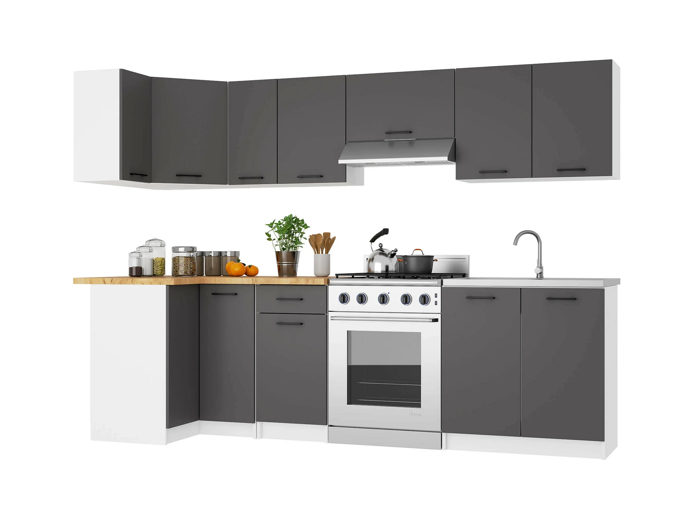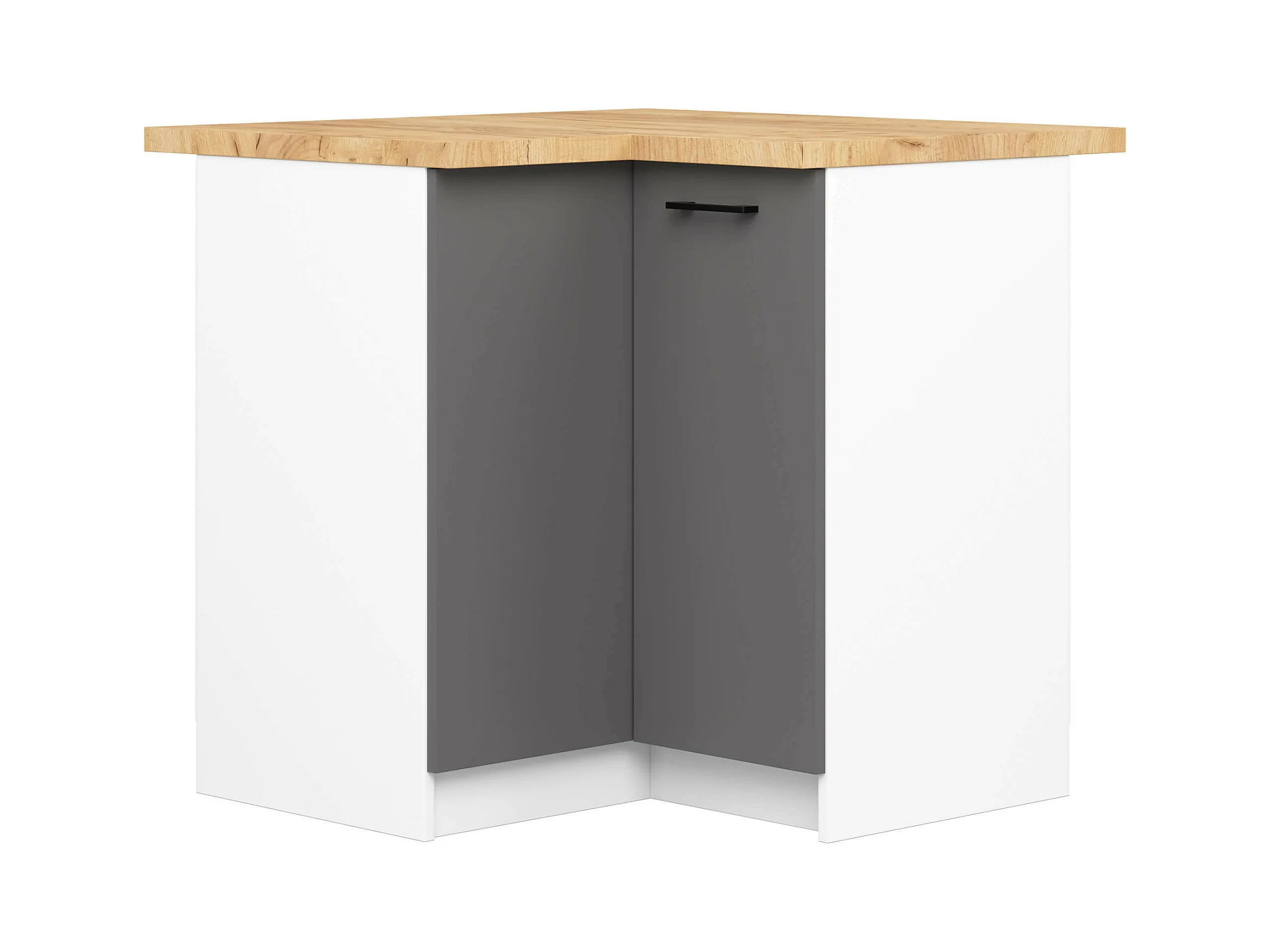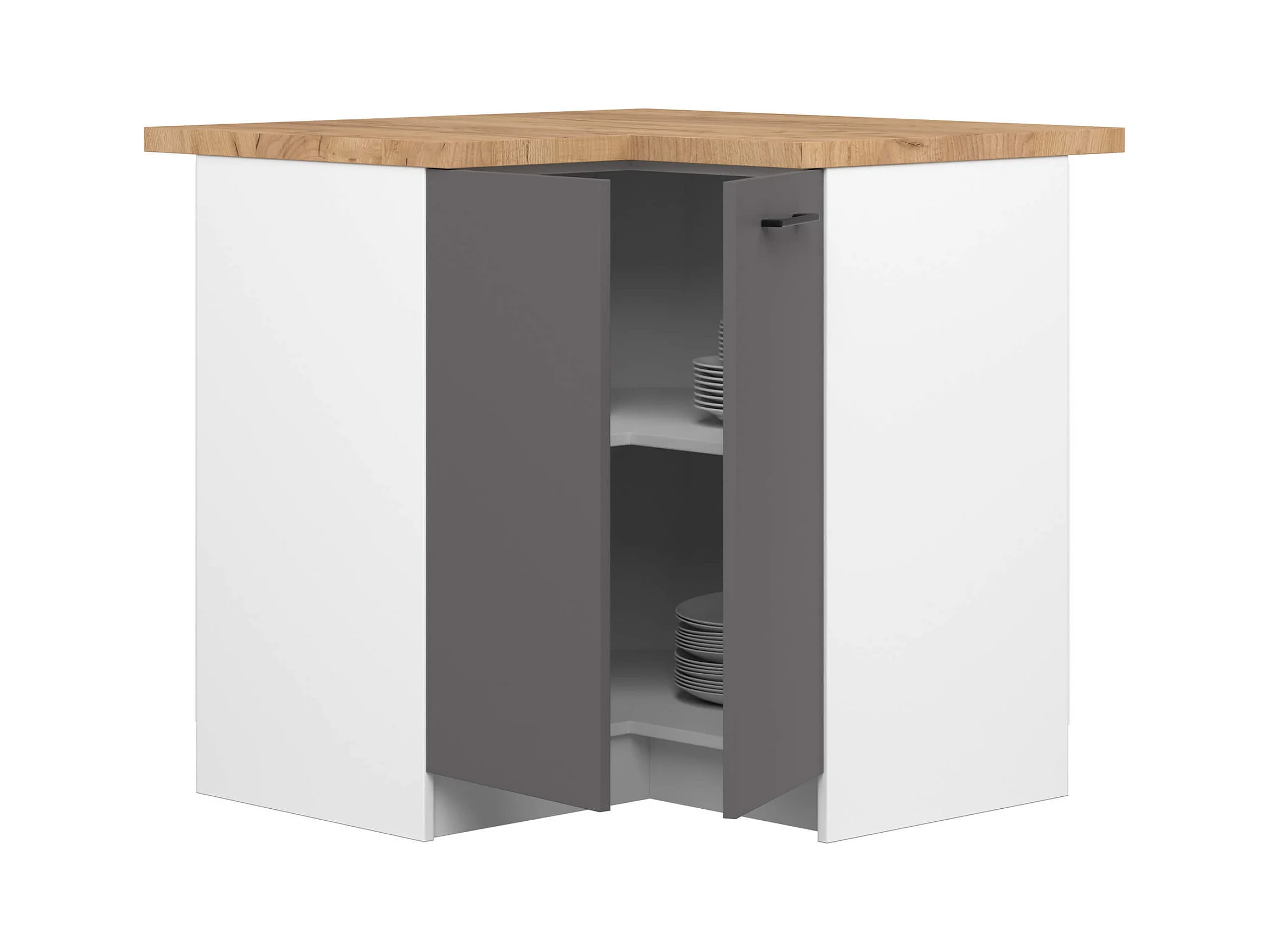 Armoires de cuisine basse AKORD S90 d'angle OLIWIA Blanc 90 cm 2 portes façade Gris Graphite 2 étagères 90x46x85 cm