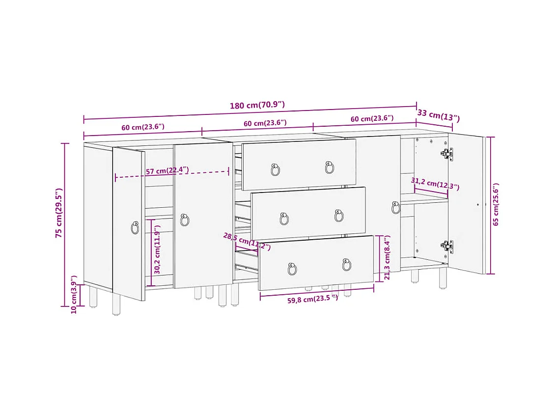 Armoires latérales 3 pcs 60x33x75 cm bois massif de manguier