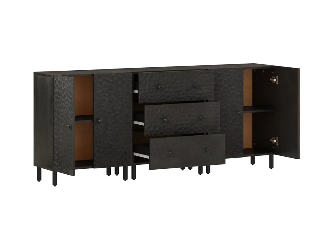 Armoires latérales 3pcs noir 60x33x75cm bois massif de manguier FR74099