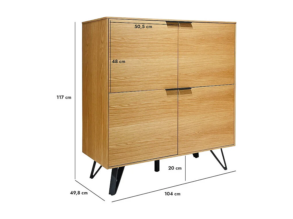 Armoirette de rangement 4 portes placage bois pieds métal – ONYX 2