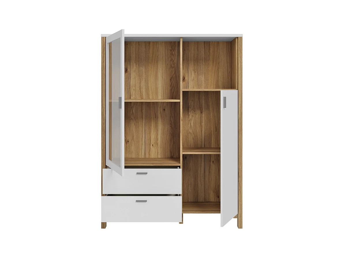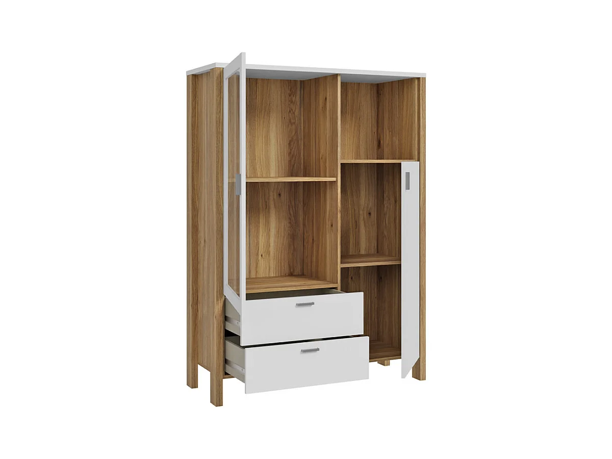 Armoirette vitrée H. 152 cm avec décor gris clair et chêne - DEVONNE