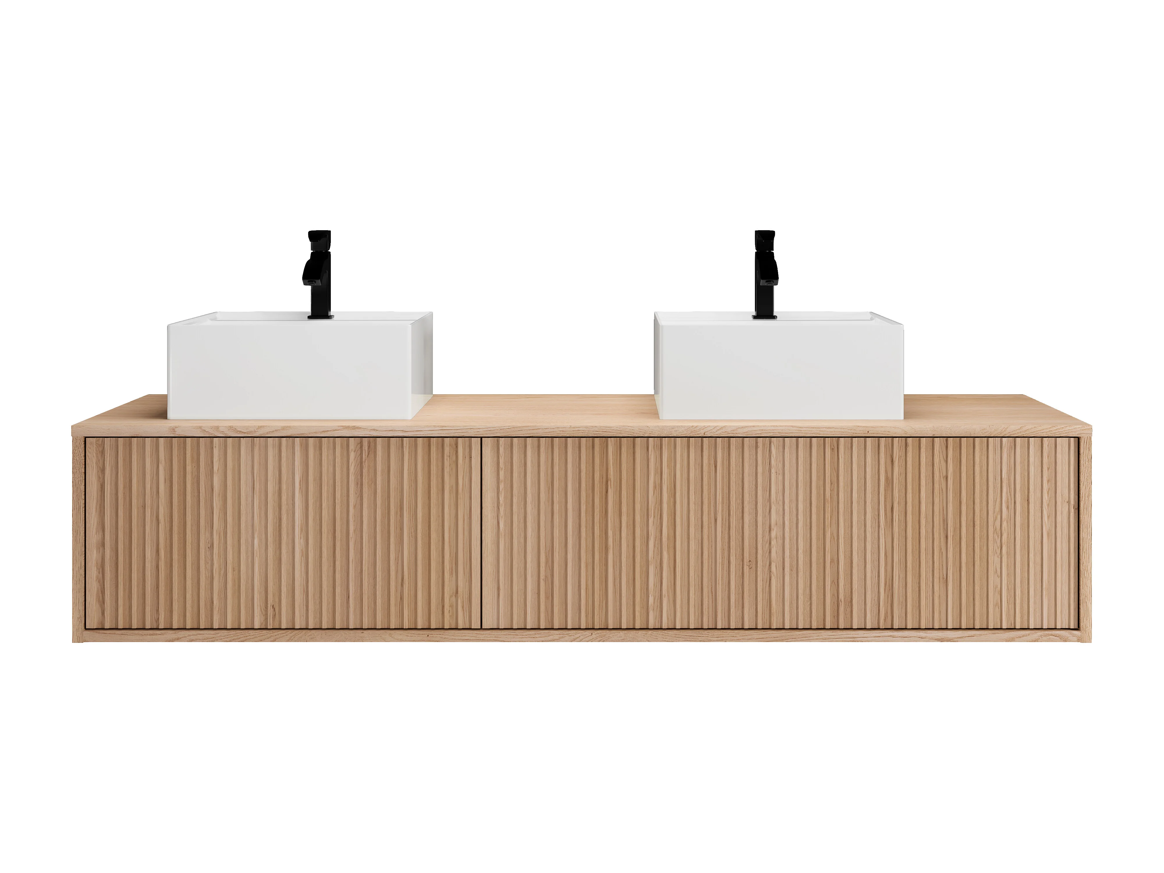 Meuble de salle de bain suspendu strié avec double vasque - Naturel clair - 150 cm - ARNEGA