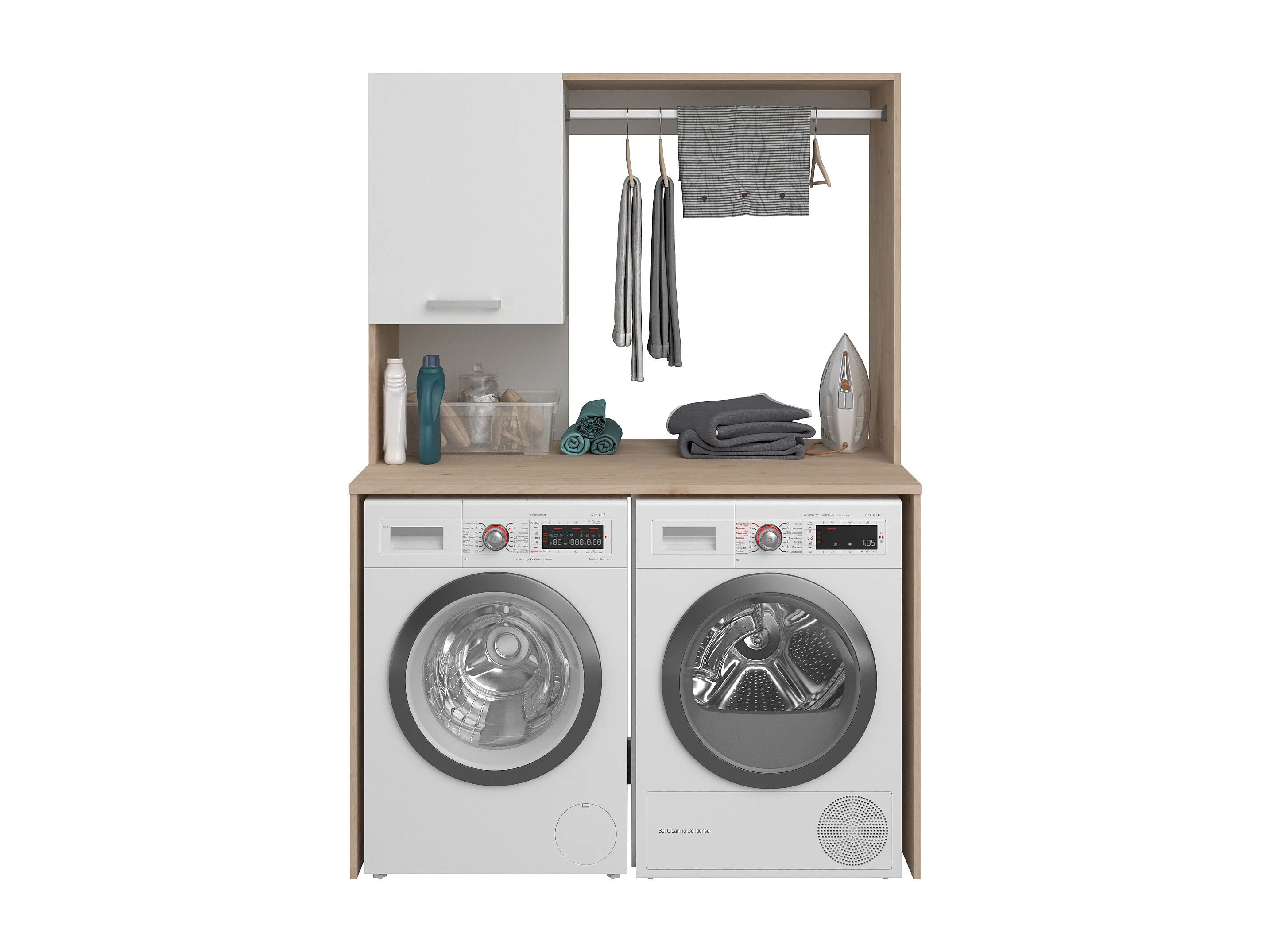 Meuble pour 2 machines à laver avec penderie et placard – L129 x H184 cm – ARNEKO