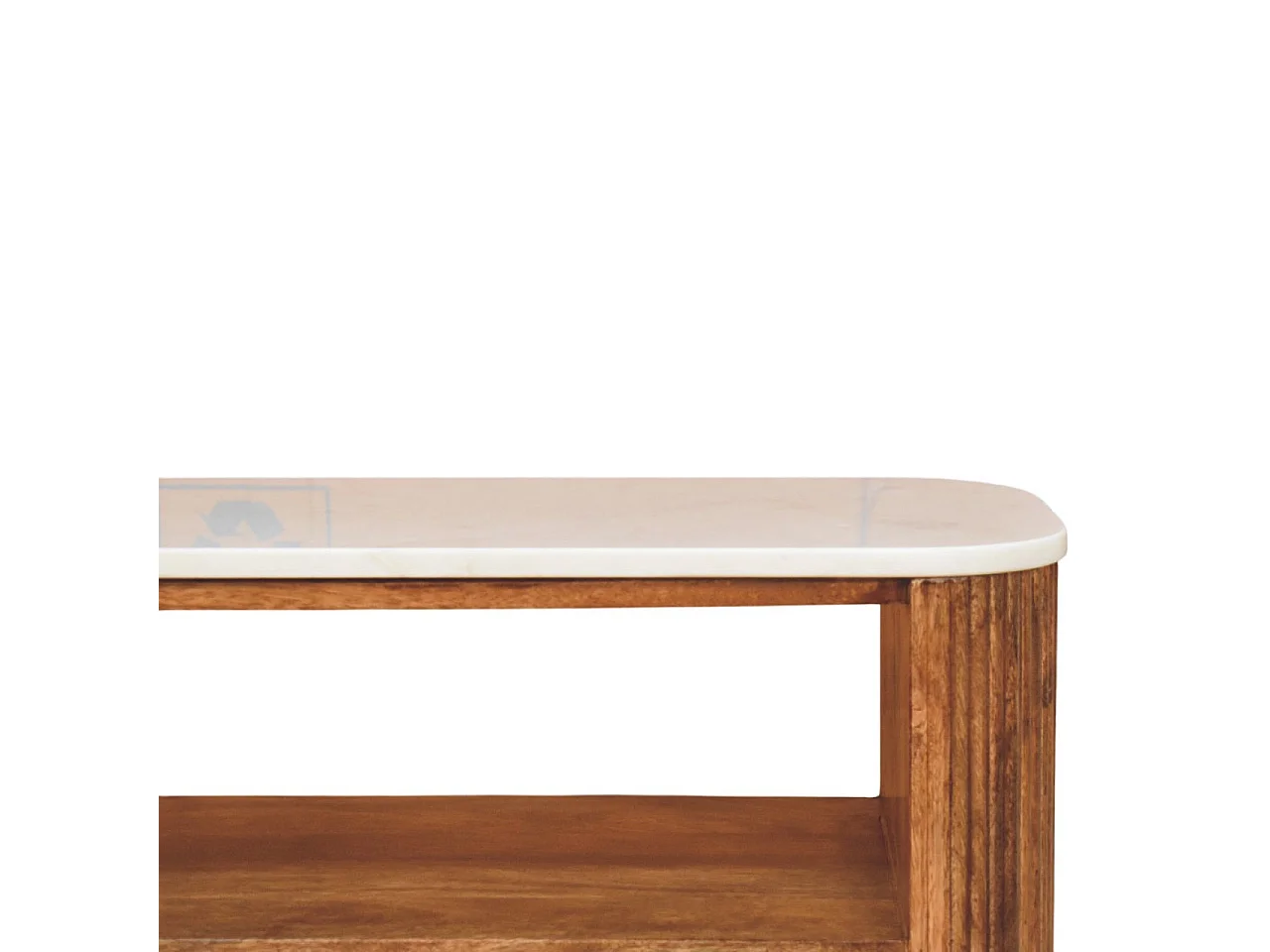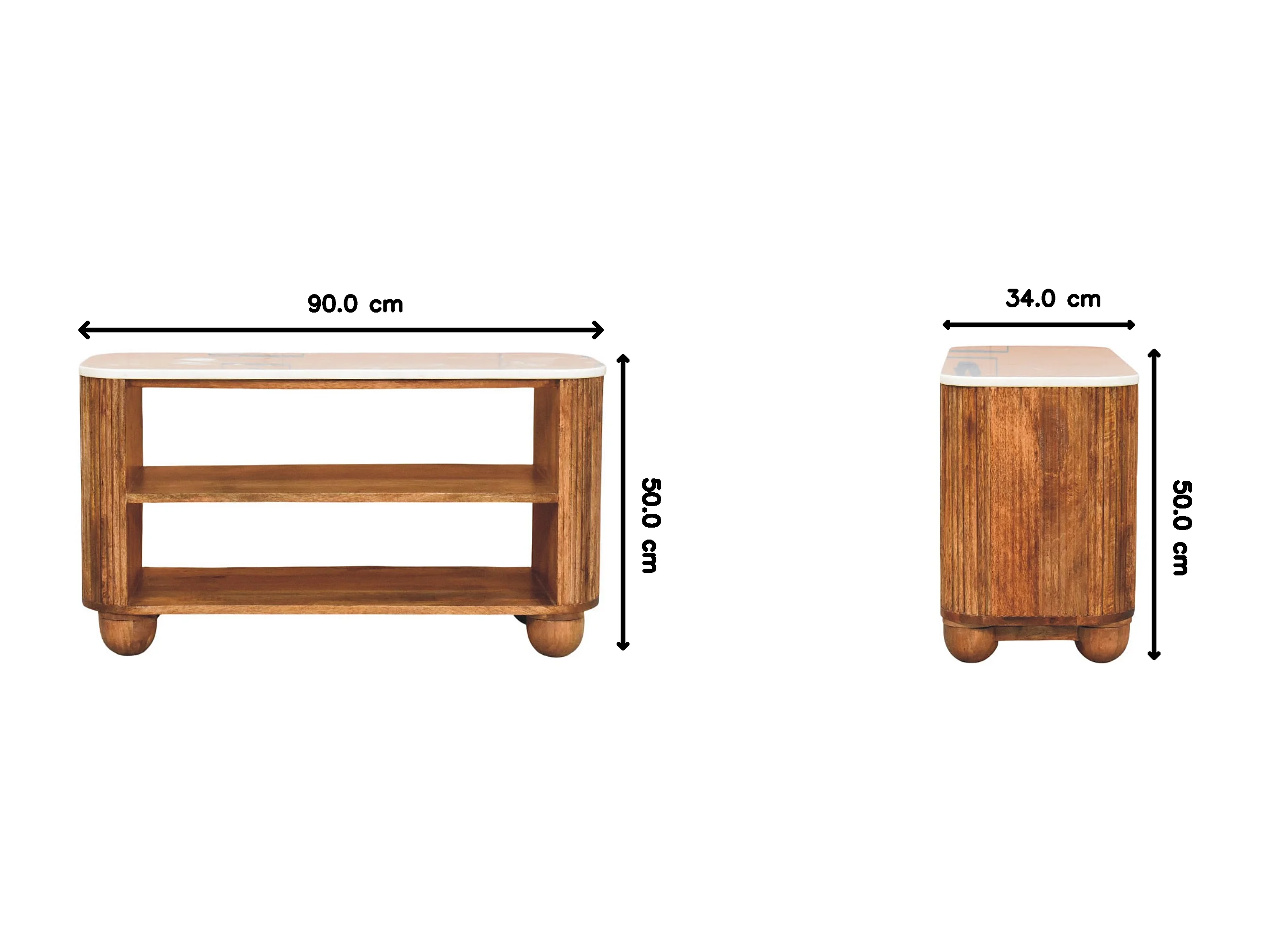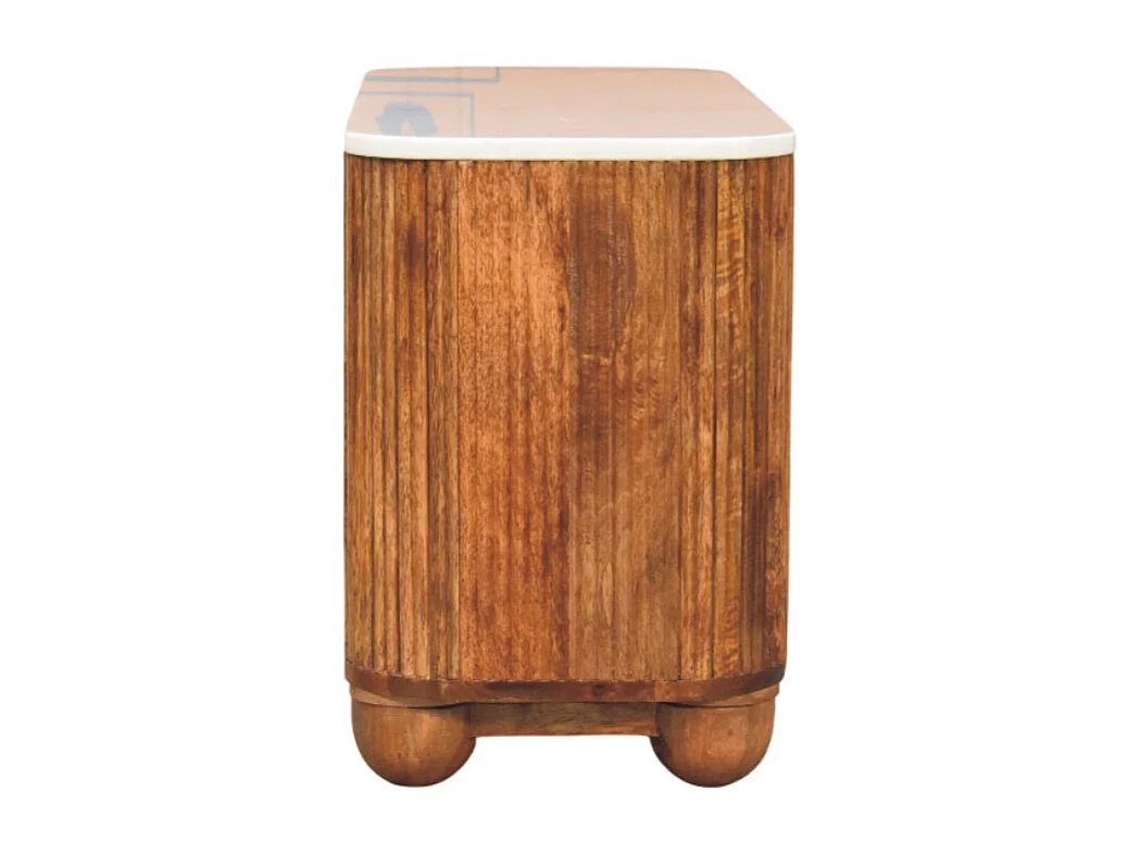 Artisan Furniture Banc à chaussures Beunumont en bois massif de manguier, plateau en marbre, deux étagères ouvertes, marron.
