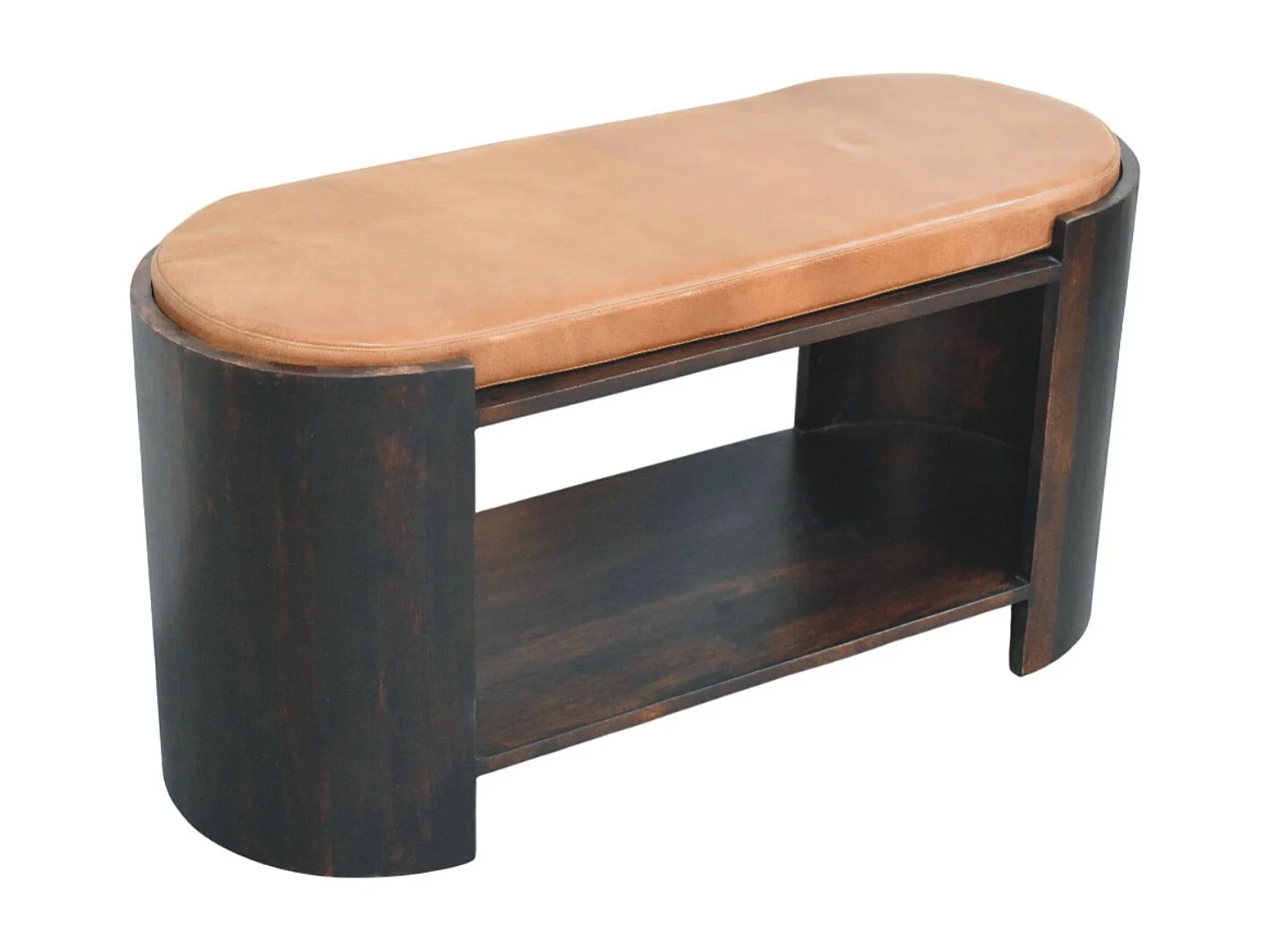 Artisan Furniture Banc à chaussures Valencia en cuir, bois massif, brun chocolat, assise lisse en cuir véritable rembourré à la main, 1 étagère