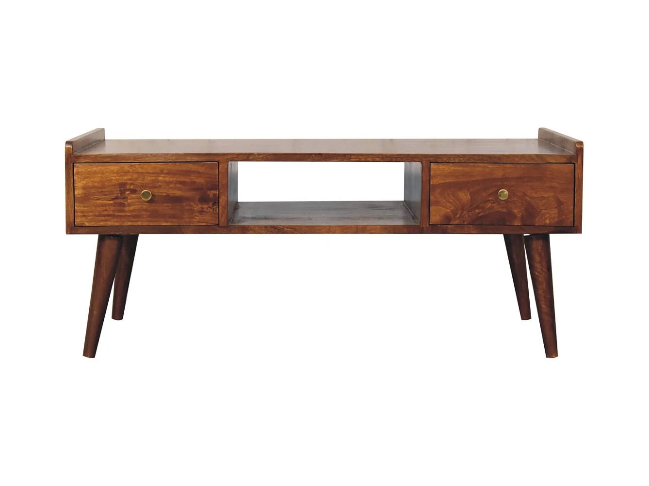 Artisan Furniture Bois Massif Meuble TV Surélevé en Châtaignier, 4 Tiroirs et Fente Ouverte, Brun Foncé