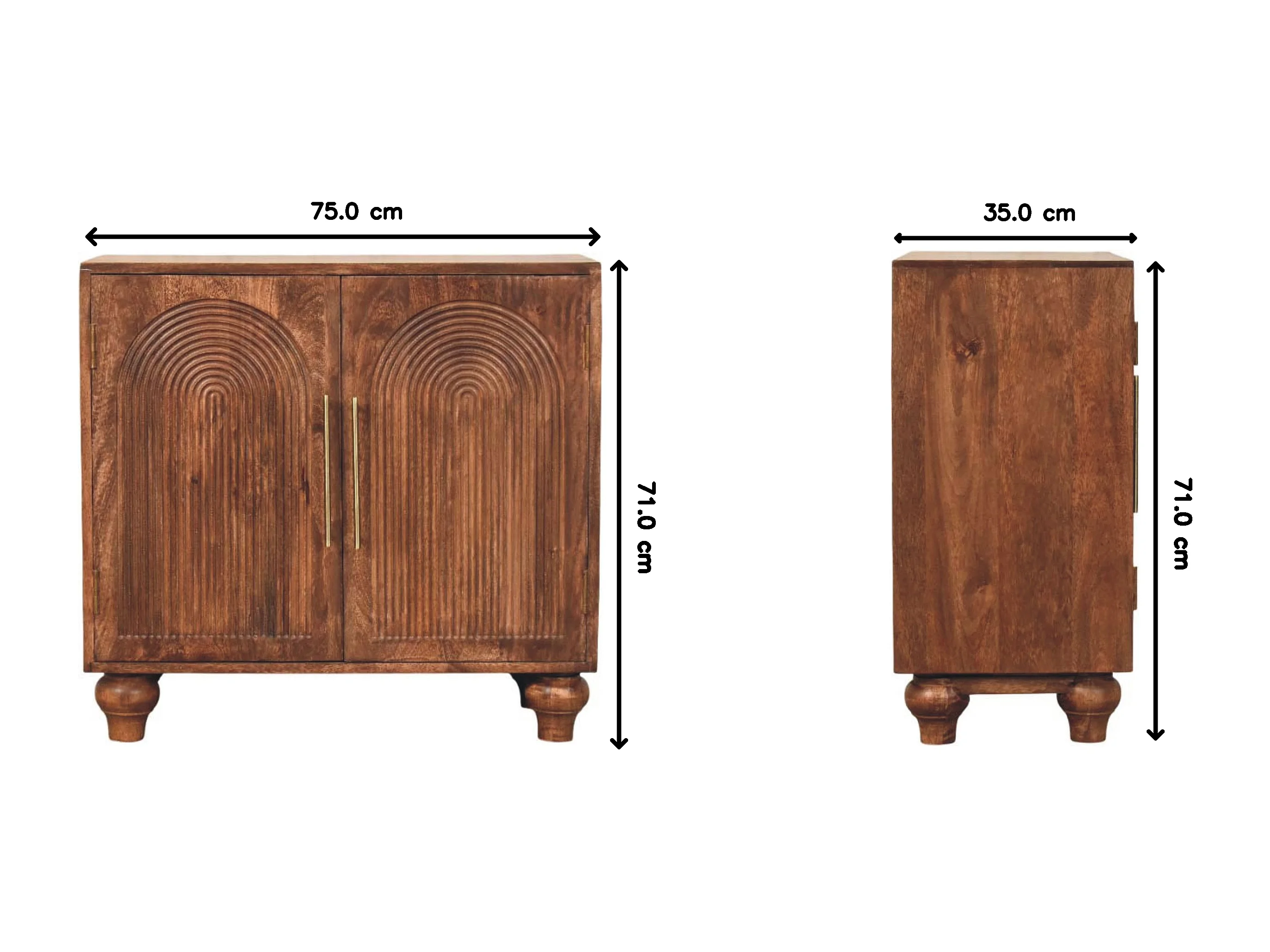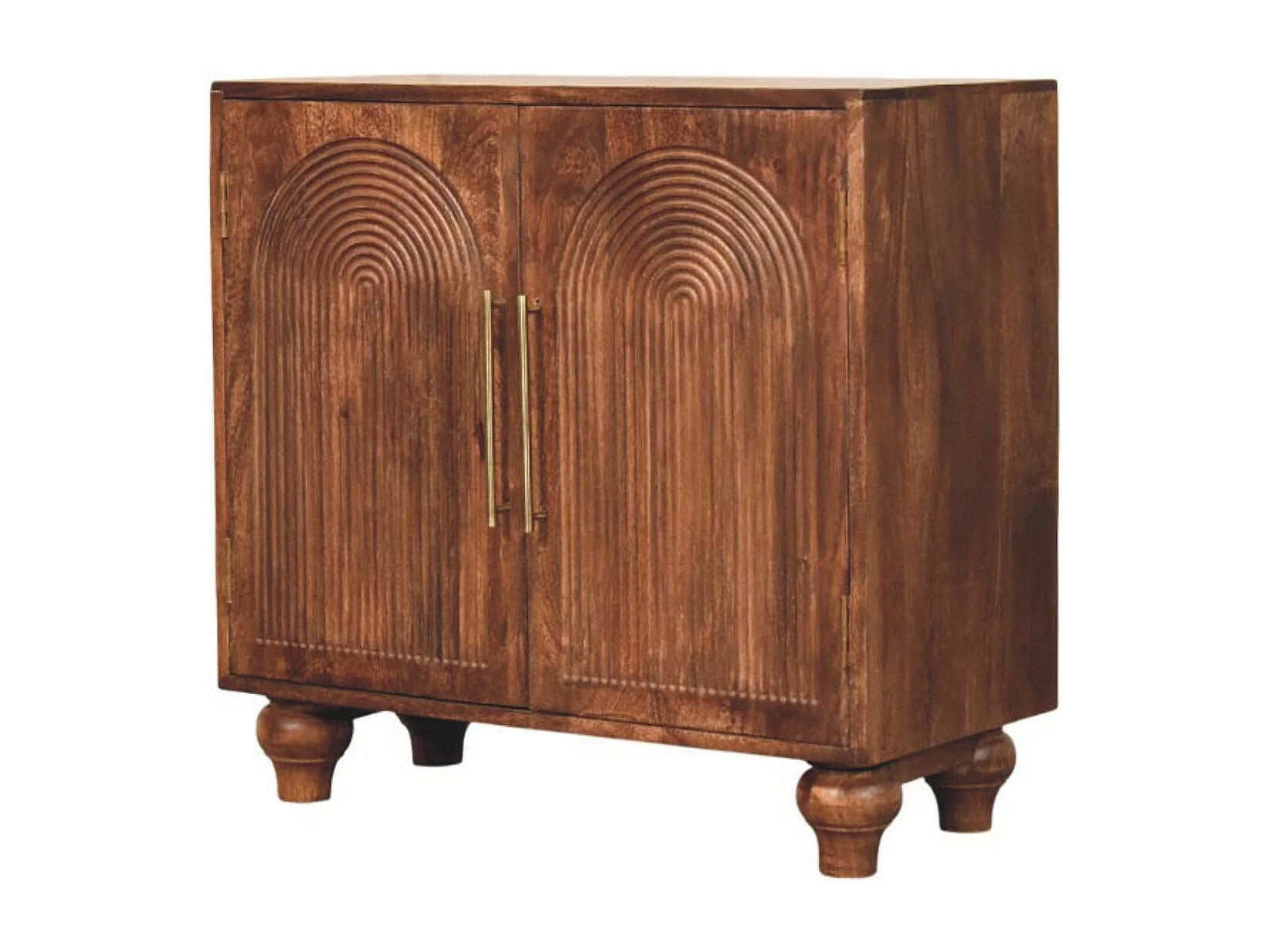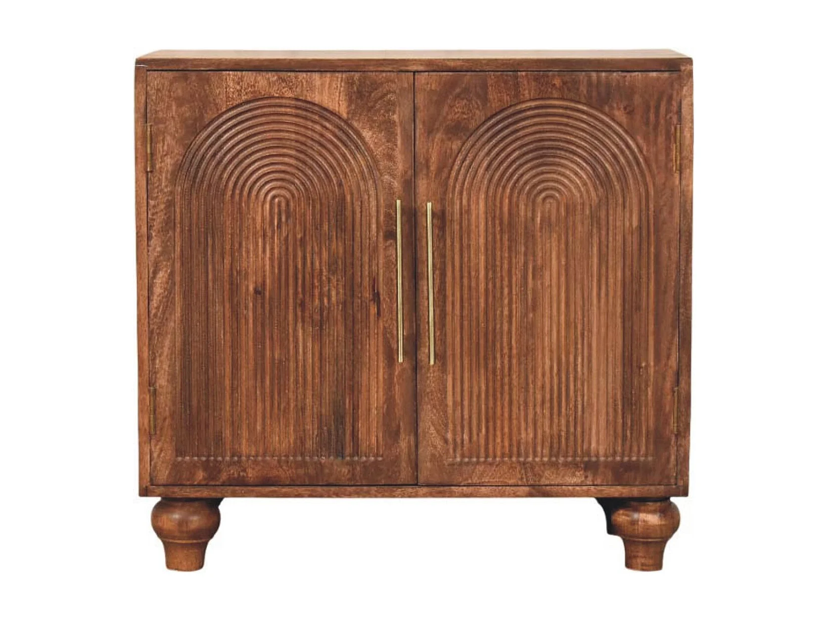Artisan Furniture Buffet Arc Groove en bois massif de manguier, 2 étagères intérieures, 2 portes avec motif en arc, marron