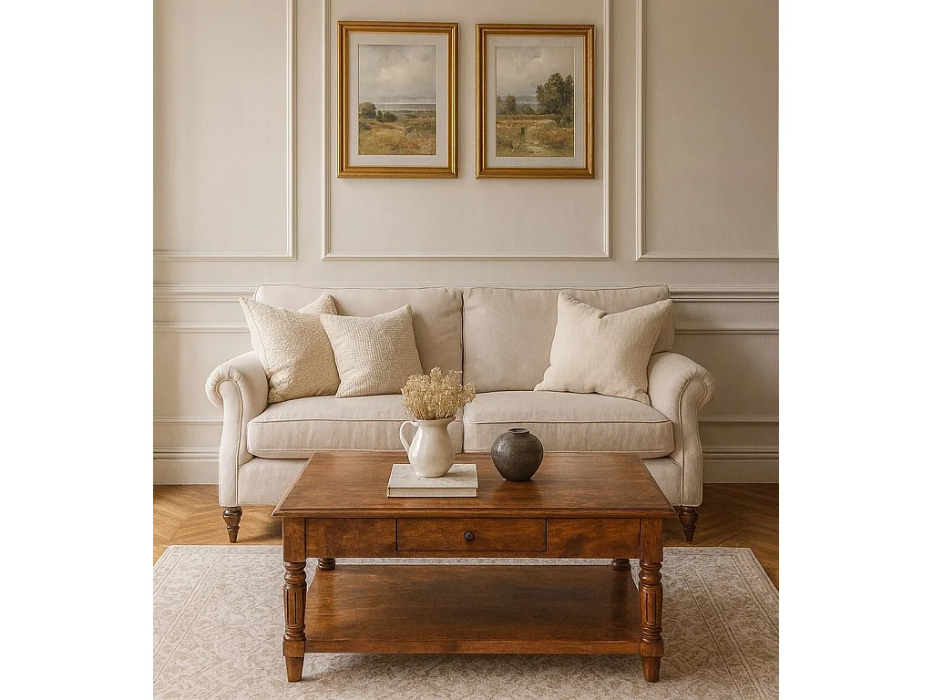 Artisan Furniture Table basse à 2 tiroirs avec pieds tournés en châtaignier