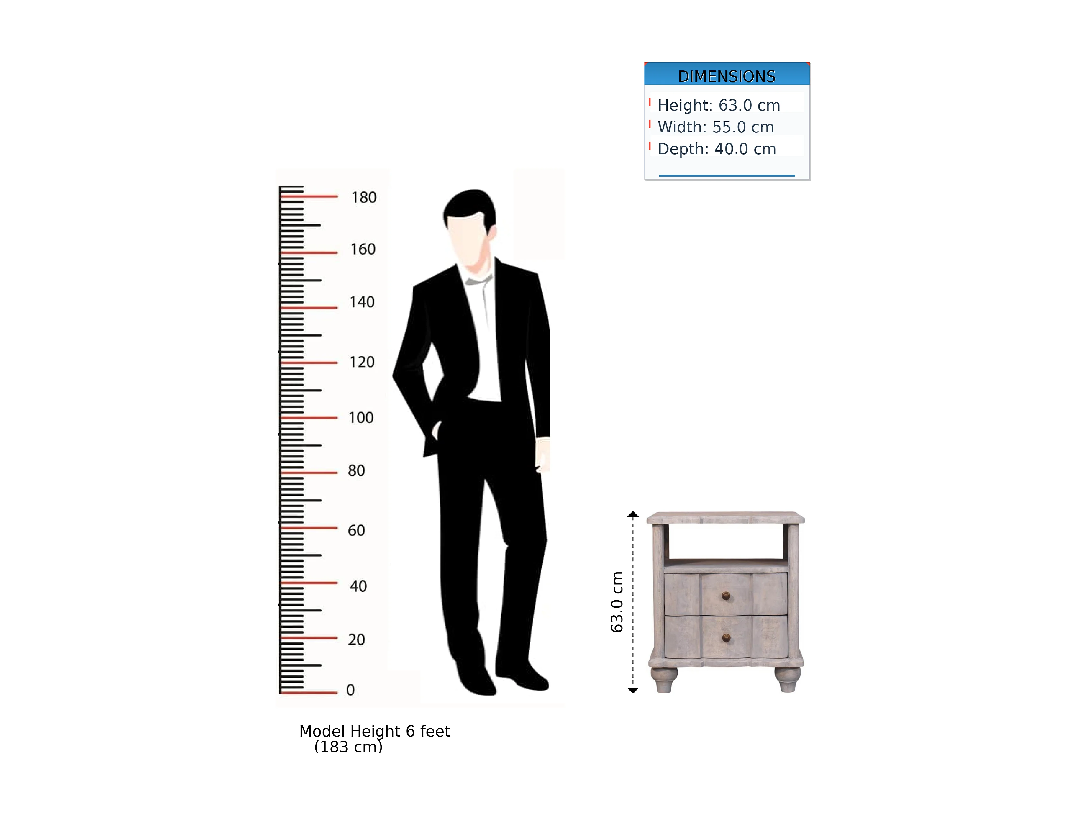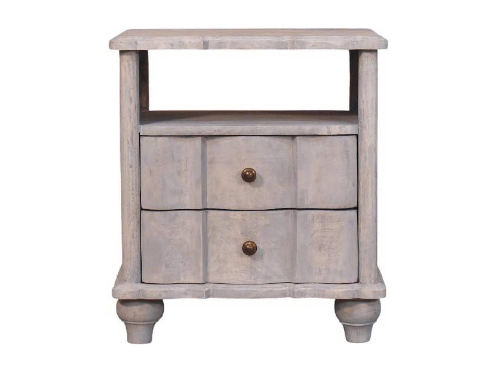 Artisan Furniture Table de chevet Luciun en bois massif, 2 tiroirs, 1 étagère ouverte, gris et marron