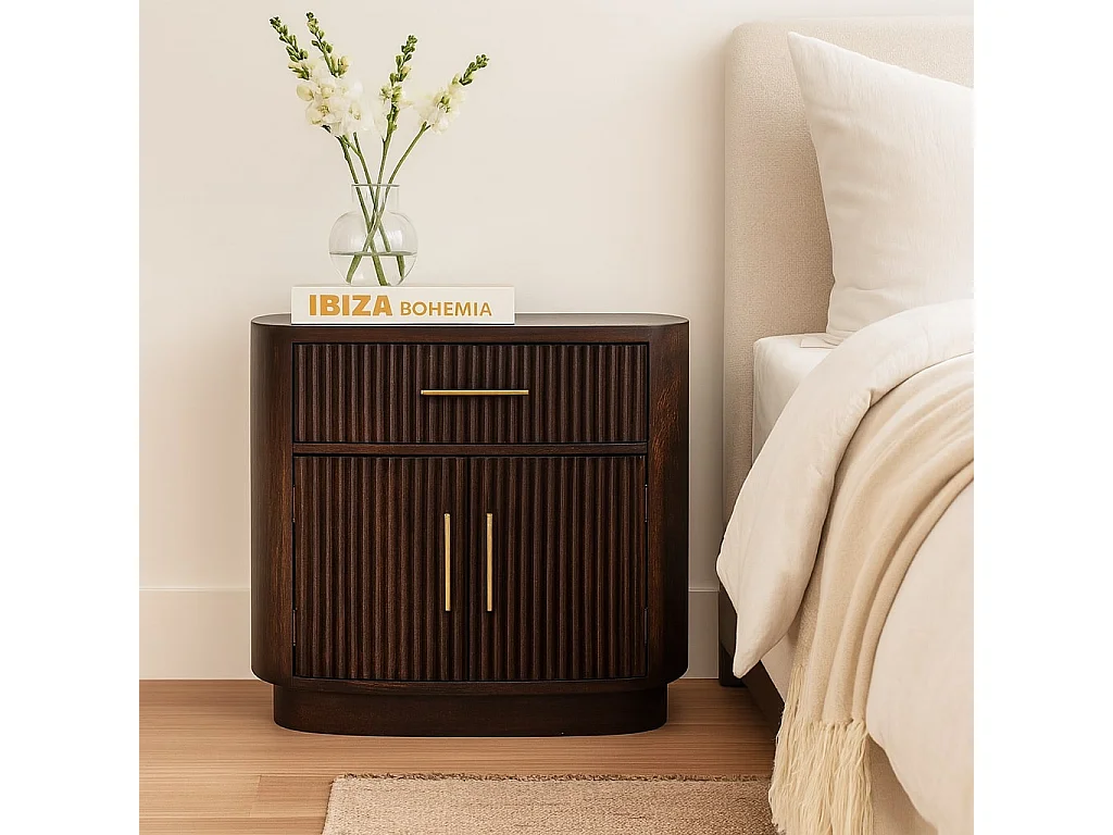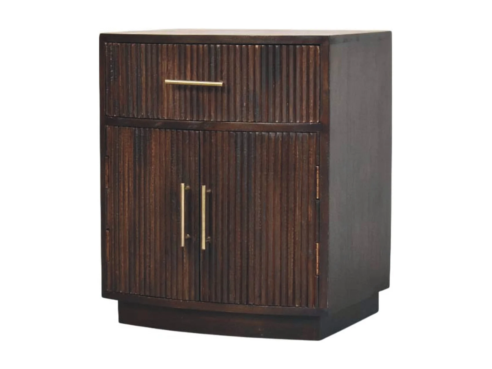 Artisan Furniture Table de chevet Milan en bois massif de manguier, 1 tiroir, 2 portes avec 2 étagères, marron chocolat