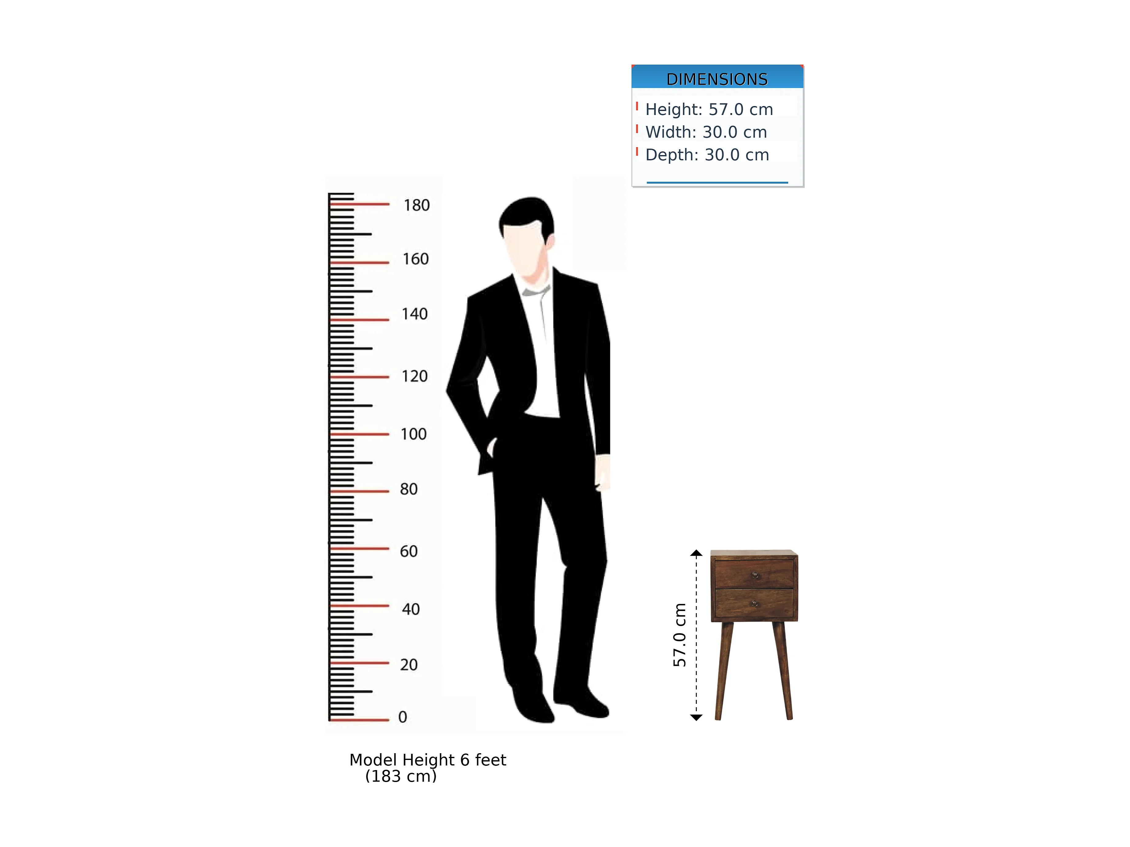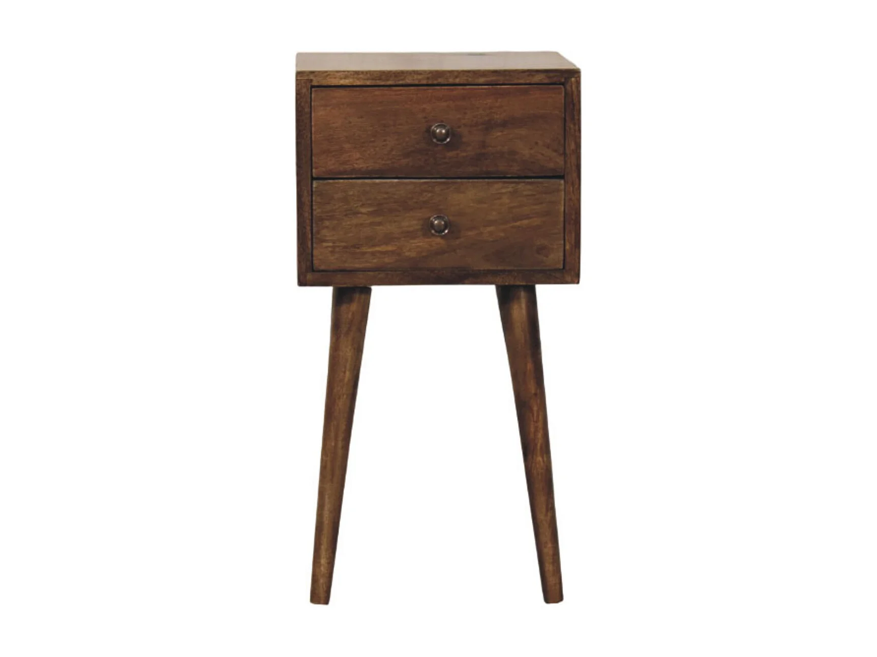 Artisan Furniture Table de chevet Nordic à 2 tiroirs en bois massif de manguier, gris classique, marron torréfié