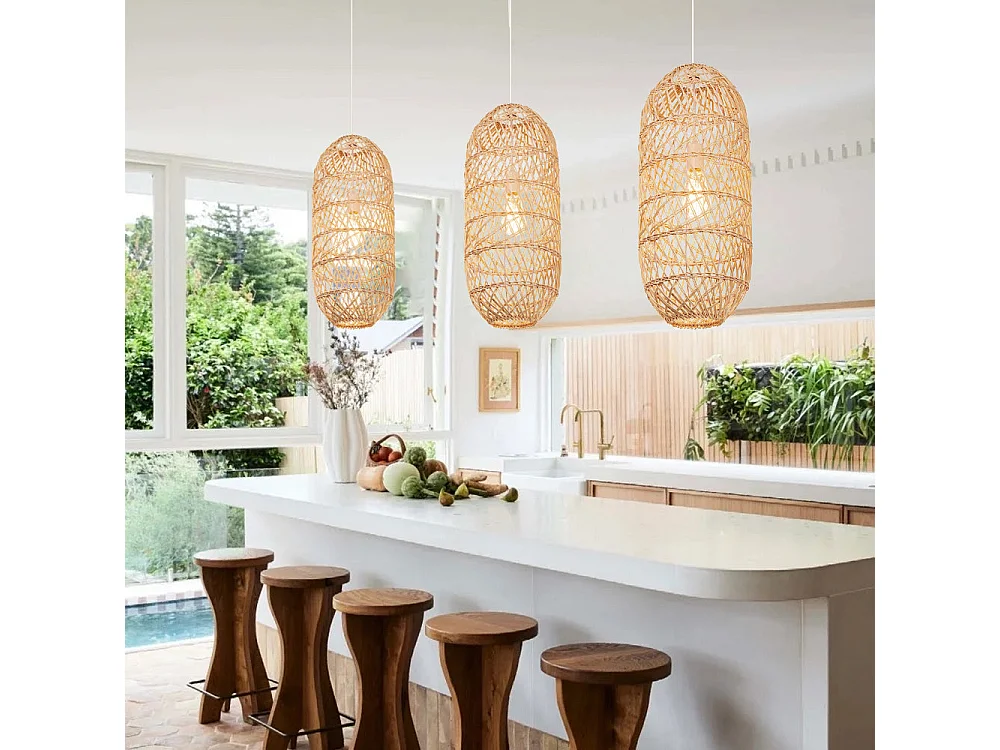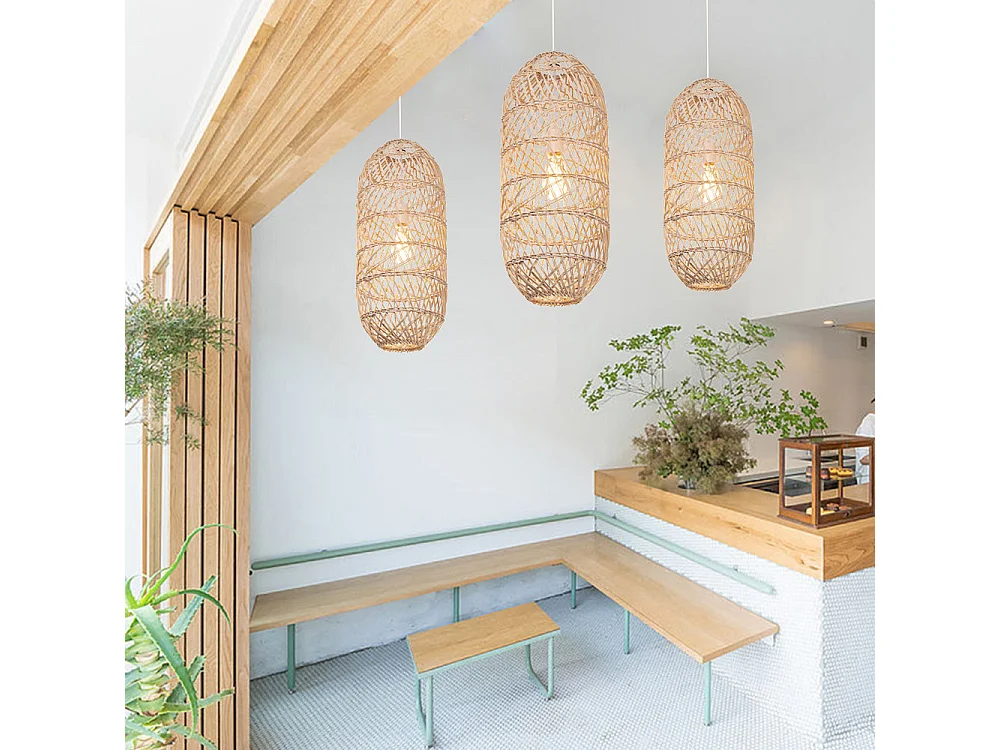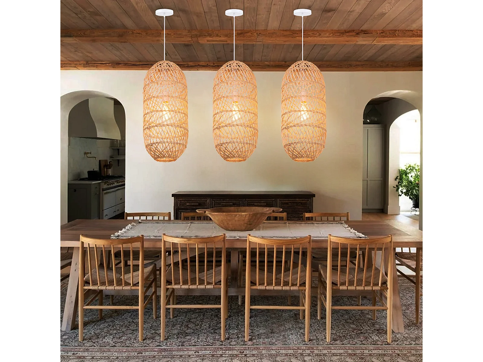 Arturesthome lampe pendante en bambou abat-jour lampe pendante de plafond e27 pour chambre à coucher salon cuisine d25 cm x h60 cm
