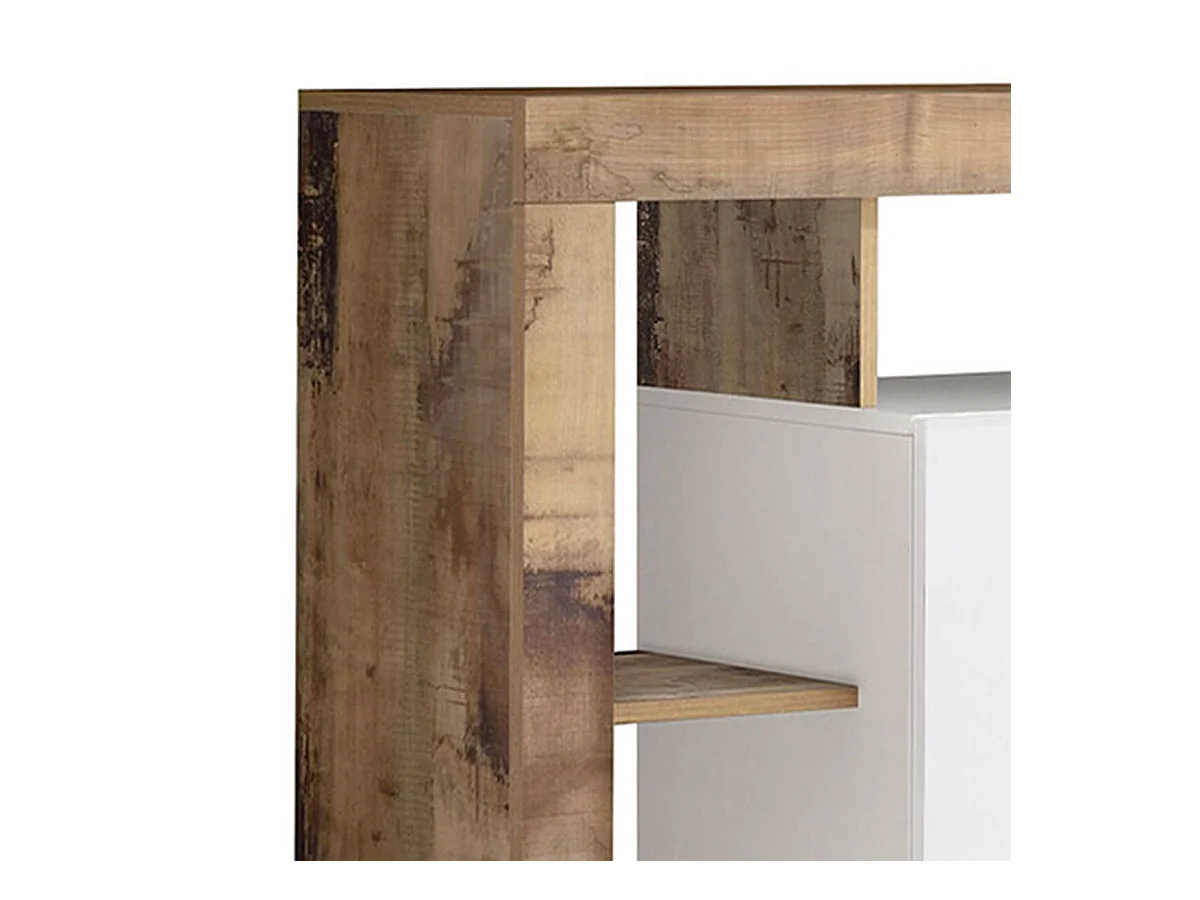 ARTURO - Buffet 2 Portes 3 Tiroirs Blanc Laqué Encadrement Niches Aspect Bois Antik