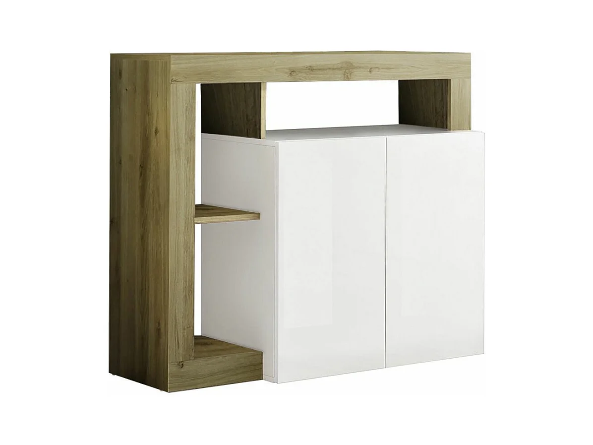 ARTURO - Buffet 2 Portes Blanc Laqué Encadrement Niches Aspect Bois Cadiz