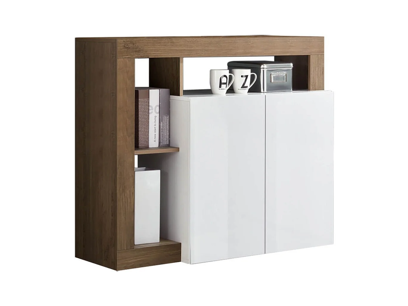 ARTURO - Buffet 2 Portes Blanc Laqué Encadrement Niches Aspect Chêne Mercure