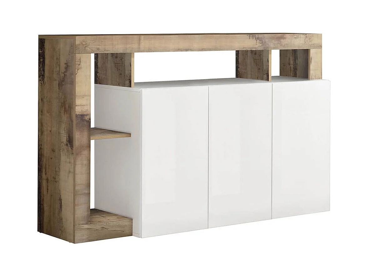 ARTURO - Buffet 3 Portes Blanc Laqué Encadrement Niches Aspect Bois Antik