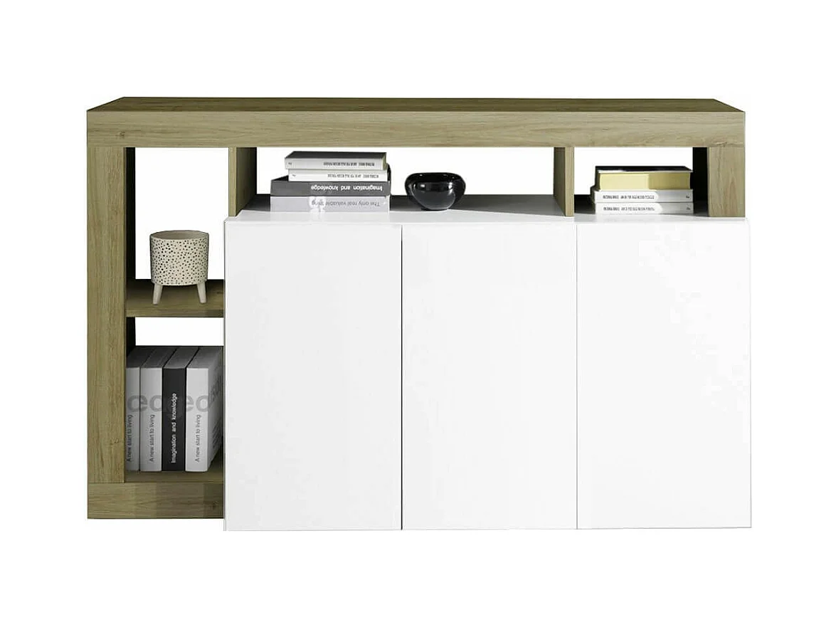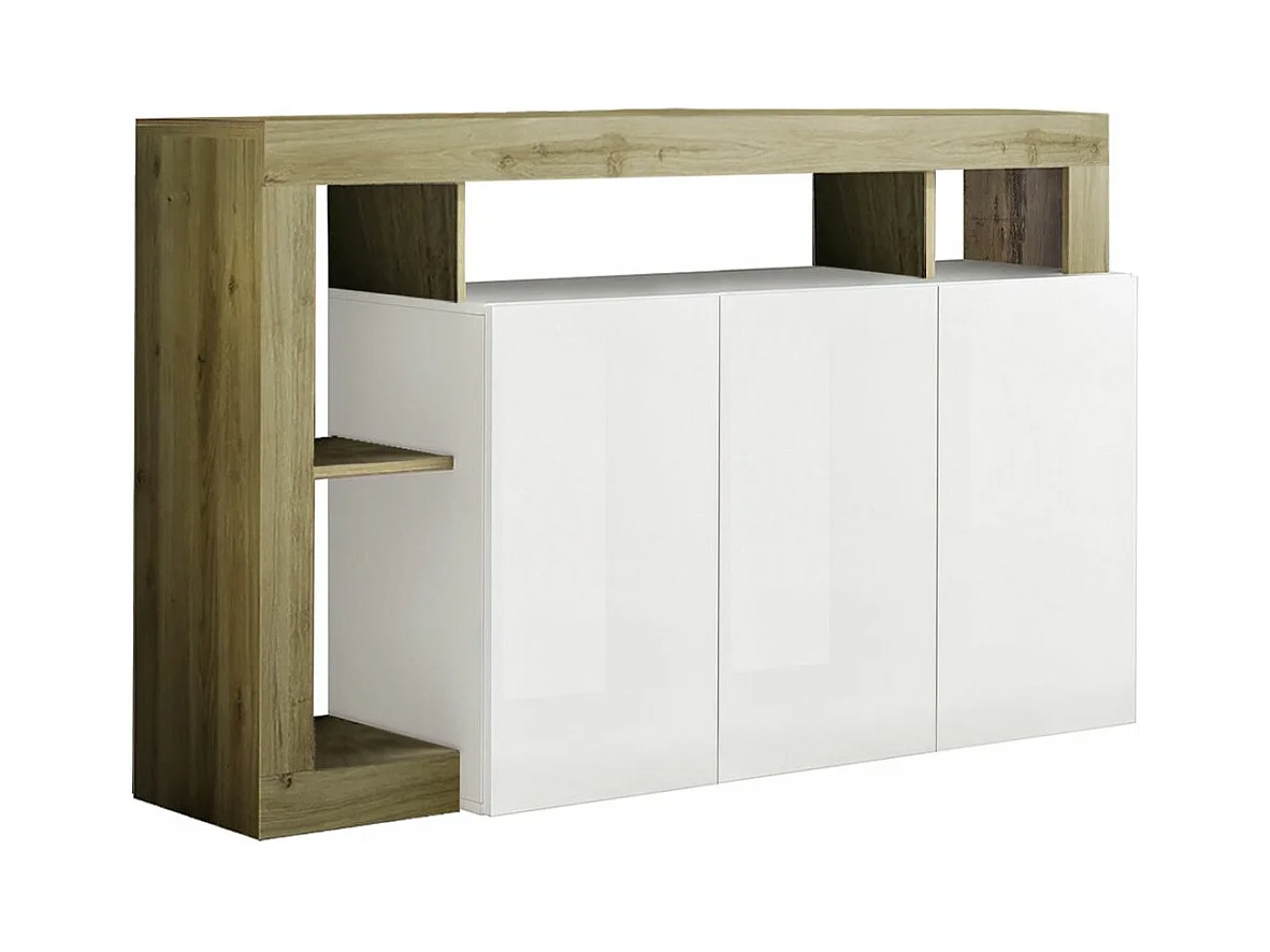 ARTURO - Buffet 3 Portes Blanc Laqué Encadrement Niches Aspect Bois Cadiz
