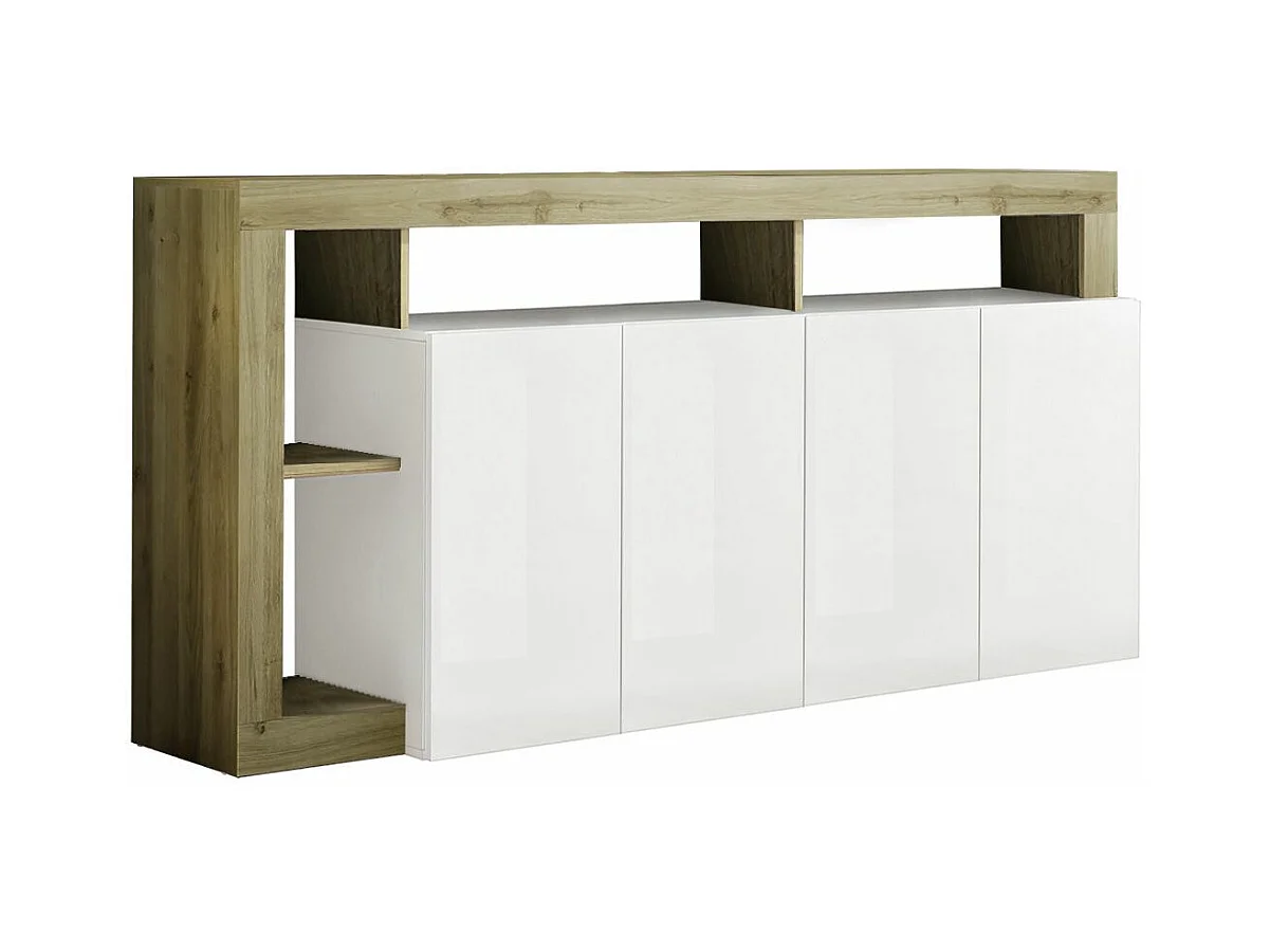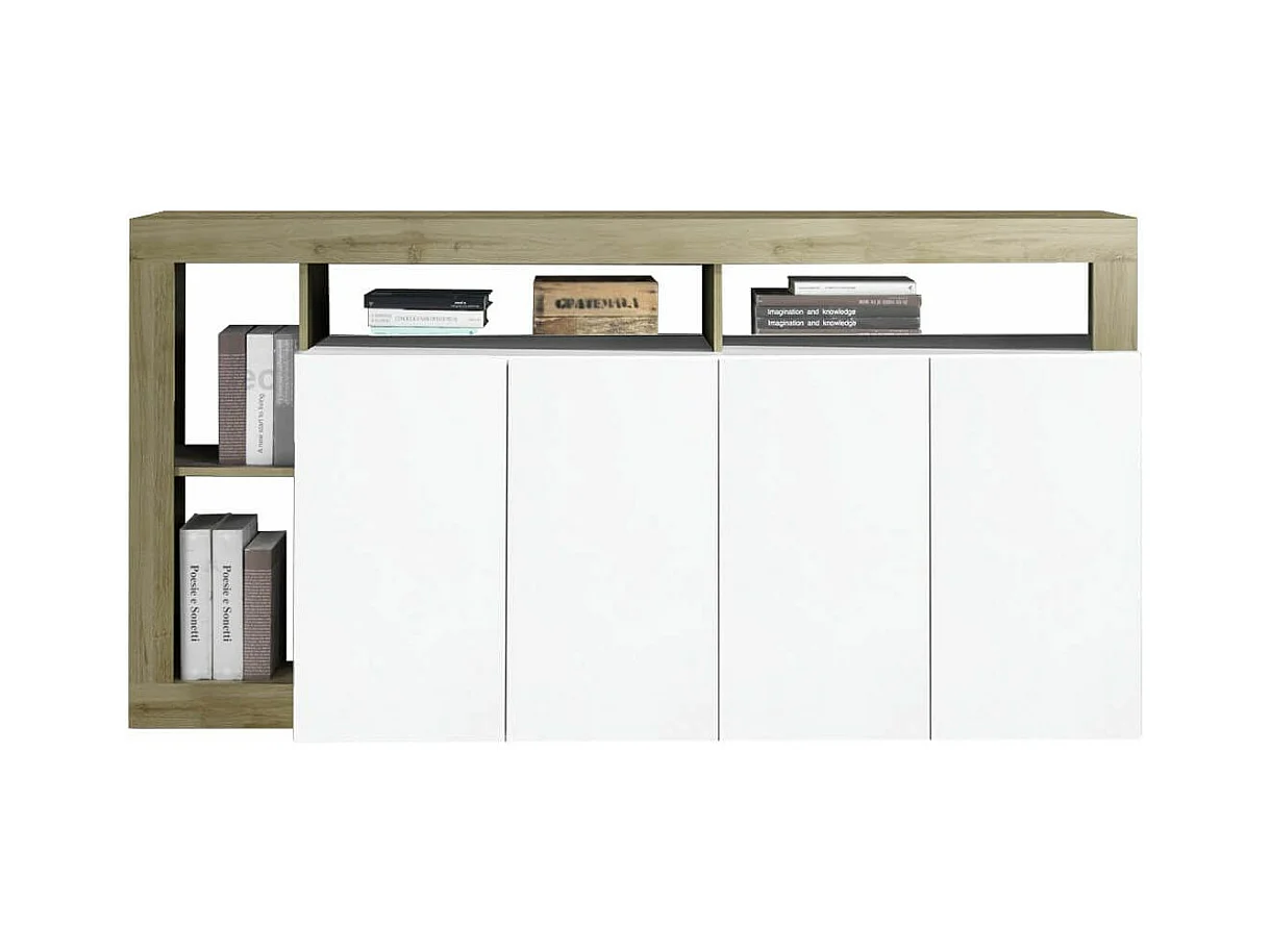 ARTURO - Buffet 4 Portes Blanc Laqué Encadrement Niches Aspect Bois Cadiz