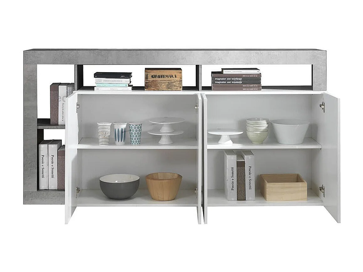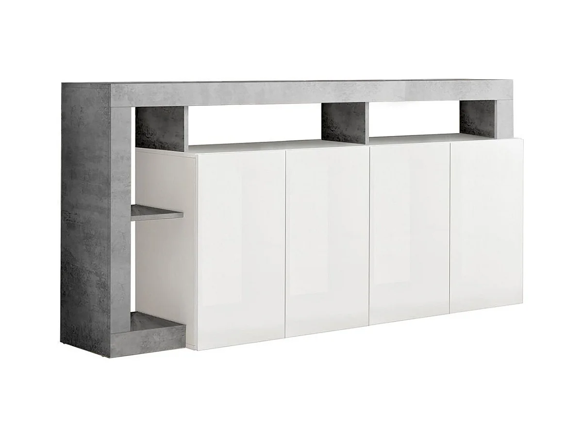 ARTURO - Buffet 4 Portes Blanc Laqué Encadrement Niches Aspect Cimento