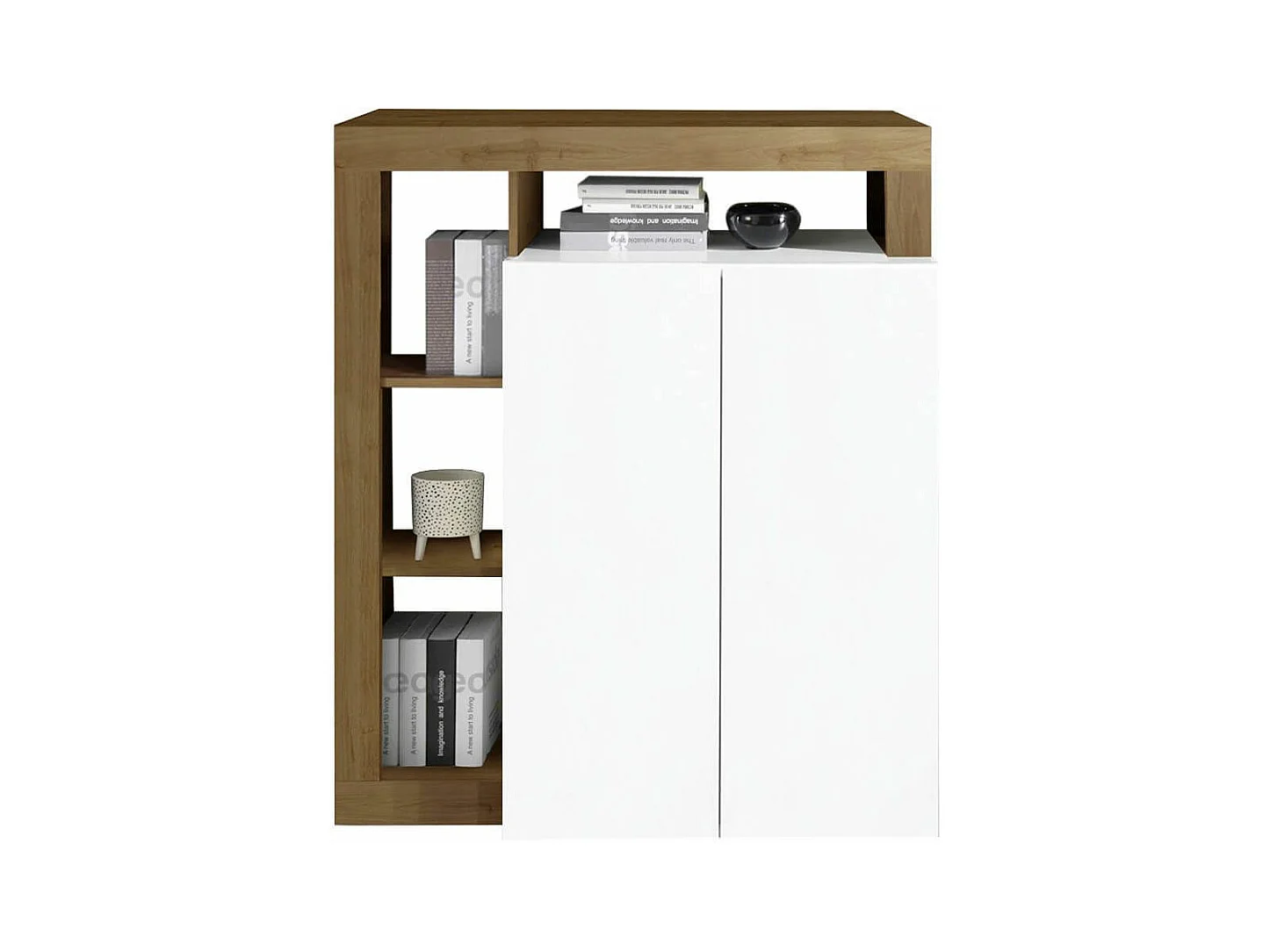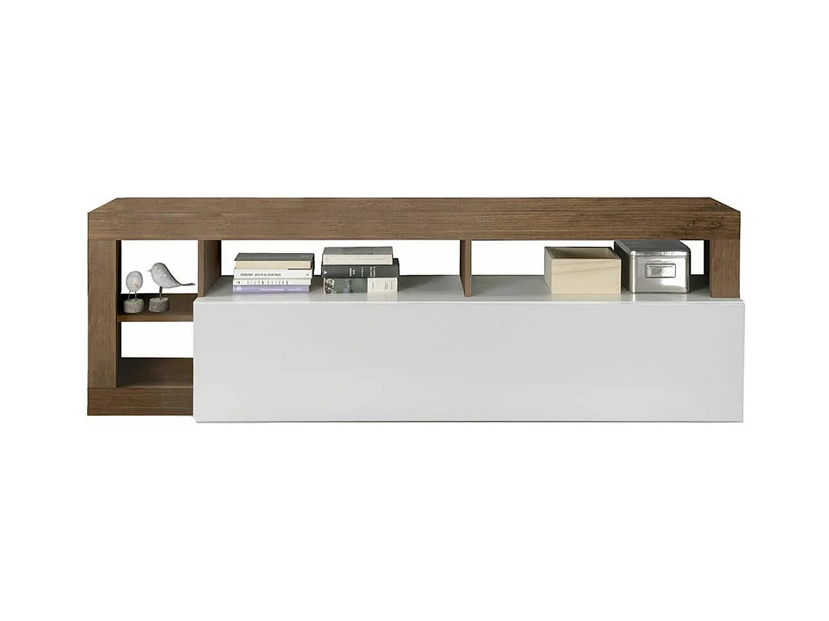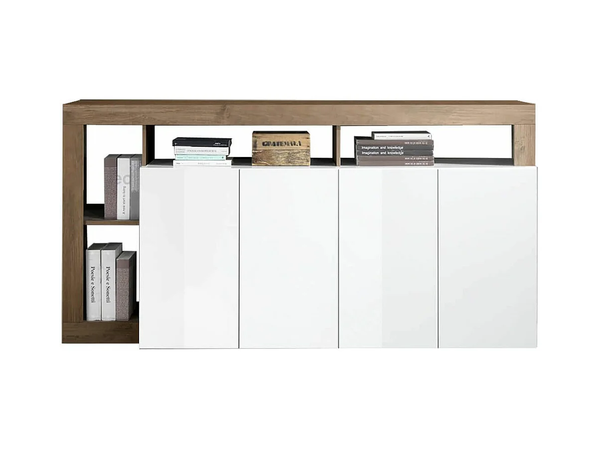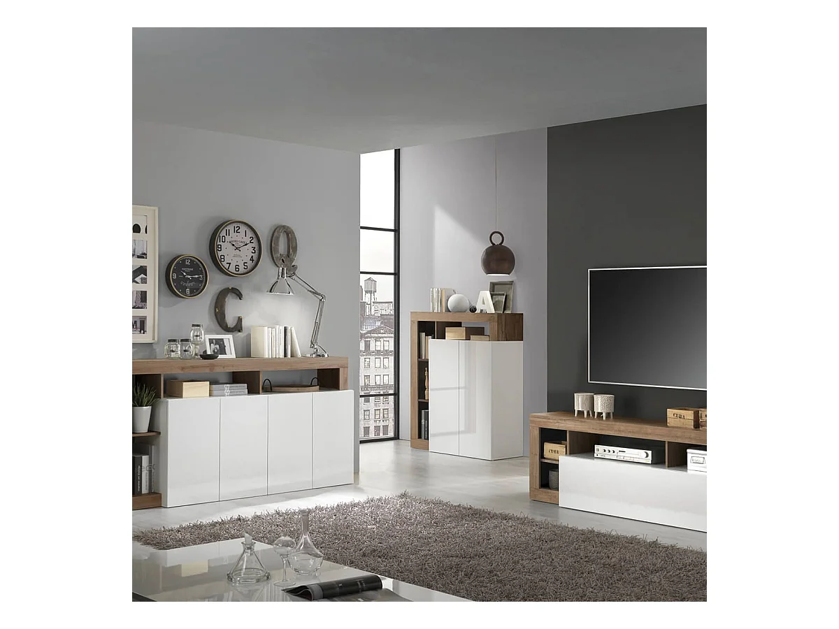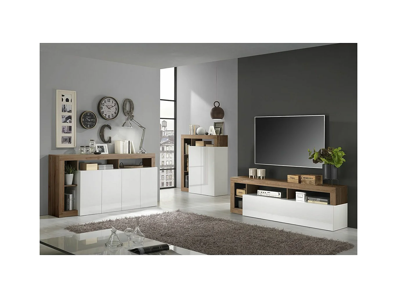 ARTURO - Ensemble Buffet 4P + Meubles TV et Bar Blanc Laqué Niches Aspect Chêne Mercure