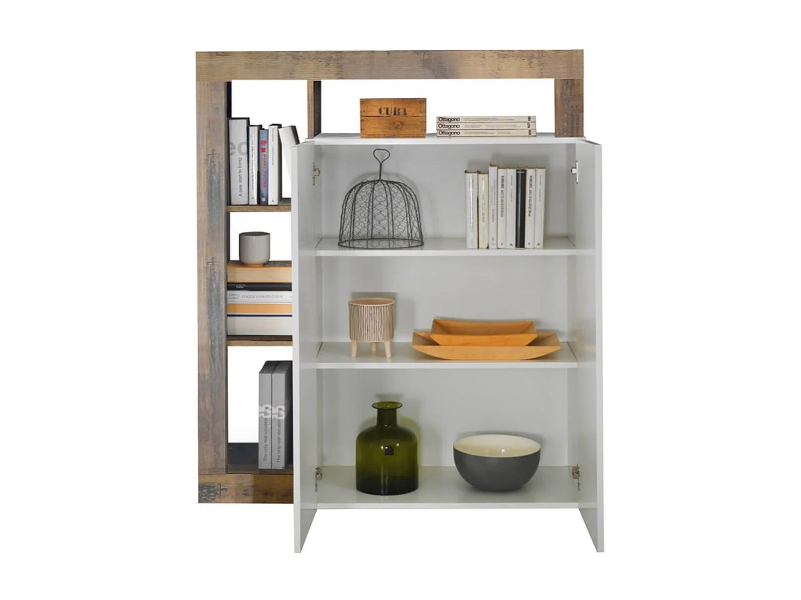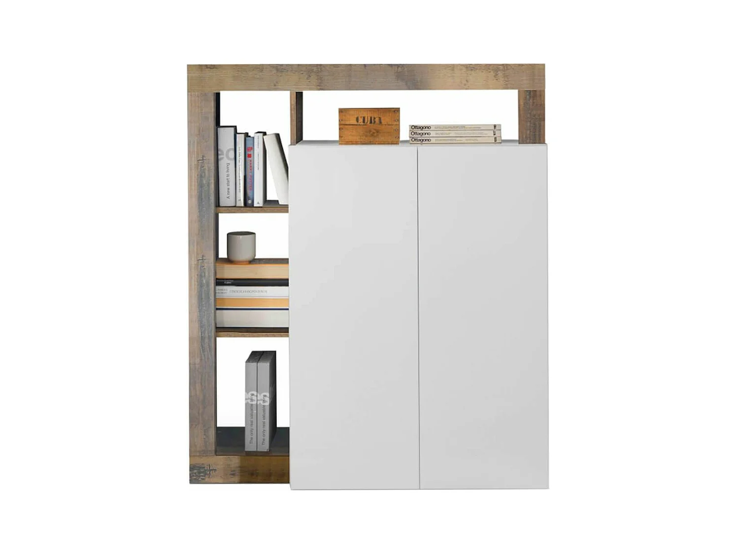ARTURO - Meuble Bar 2 Portes Blanc Laqué Encadrement Niches Aspect Bois Antik