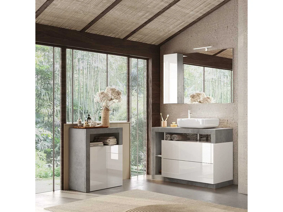 ARTURO - Rangement 3 tiroirs 64cm blanc laqué et aspect béton