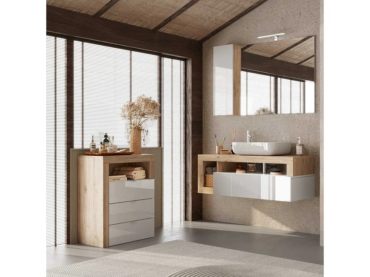 ARTURO - Rangement 3 tiroirs 64cm blanc laqué et aspect bois finition Cadiz