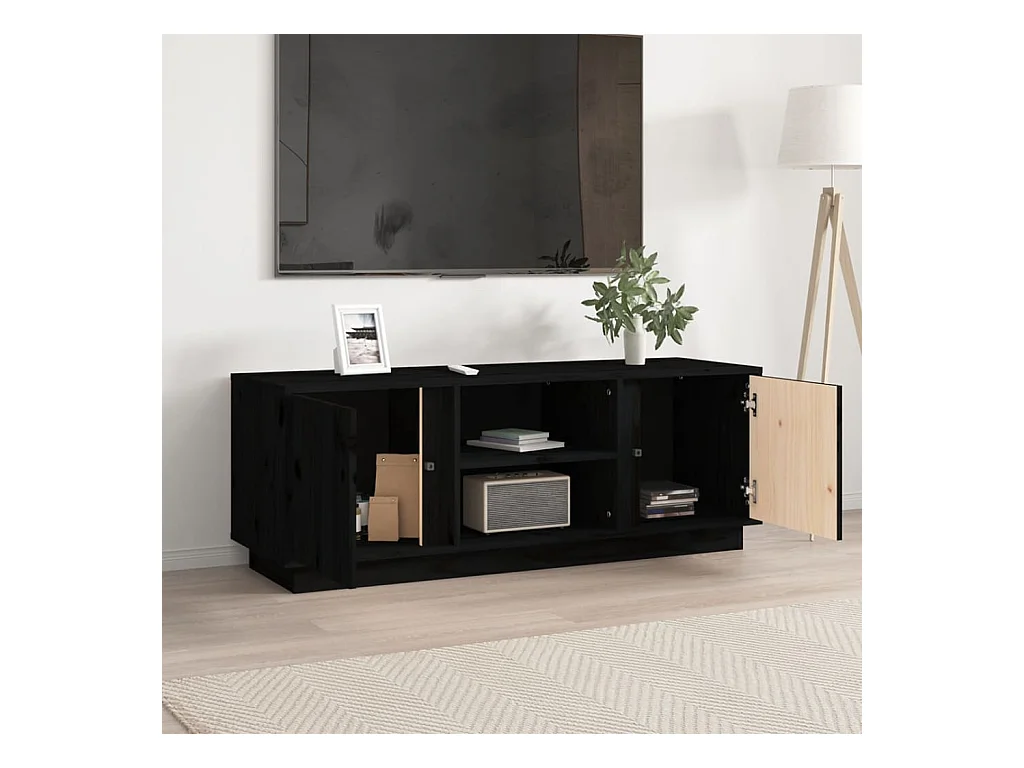 Mandy Meuble TV Noir 103x36,5x52 cm Bois de pin massif